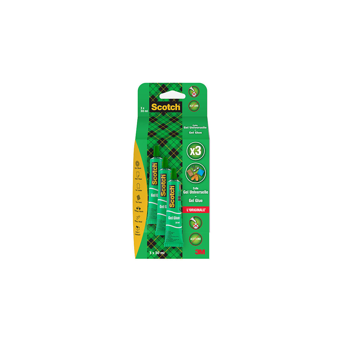 | Libellé | Lot de 3 tubes de colle gel universelle "l'originale", sans acétone, Pack 100% Carton. Colle gel multi-fonctions, 3x30ml |
