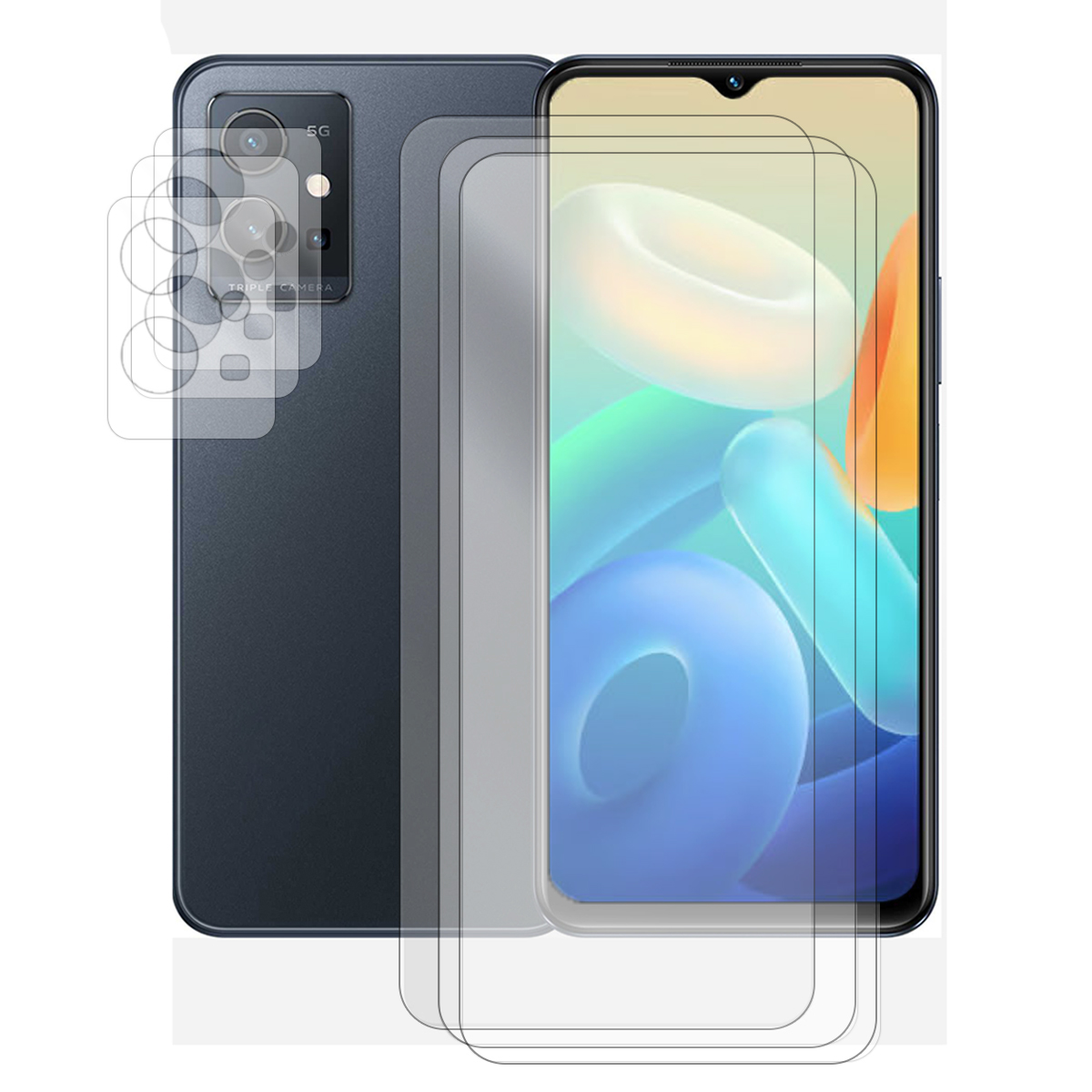 Lot de 3 Verre trempé pour vivo Y76 5G 6.58" V2124+lot de 3 Verre trempé d'objectif camera arrière