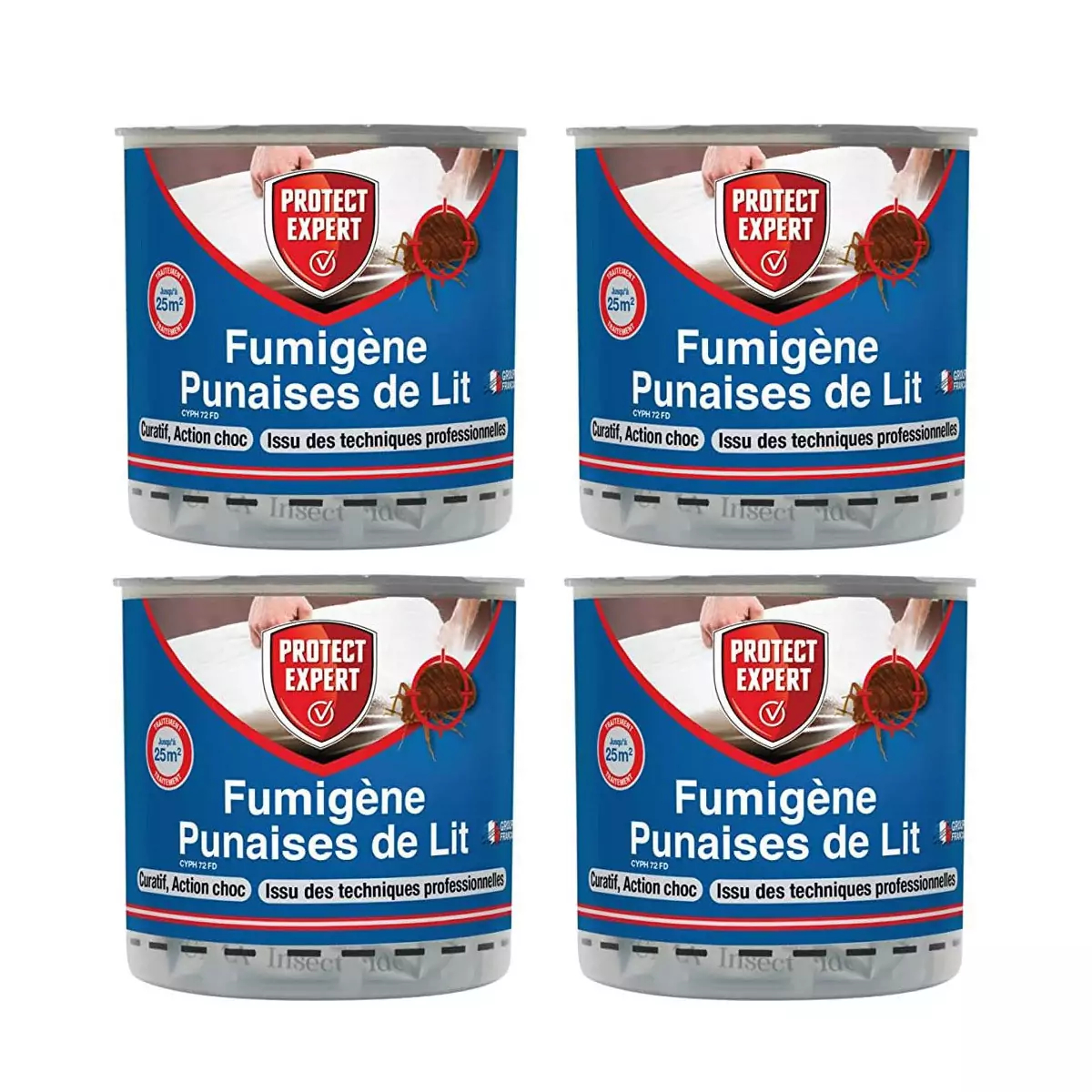 Spécialement conçu pour éliminer les punaises de lit, larves et puces, le fumigène anti-punaise de lit Protect Expert s'utilise à l'intérieur et permet par sa solution facile d'utilisation d'accéder aux endroits hors de portée par les traitements insecticides classique.Quelles sont les clés de réussite ?Le fumigateur libère un brouillard 30 seconde minimum après activation du fumigateur imprégnant la zone à traiter et atteint les moindres recoins où se dissimulent les insectes. Un fumigateur de 10g permet de traiter 25m² ou 65m3 pour les insectes rampants. Un fumigateur de 10g permet de traiter 50m² ou 130m3 pour les insectes volantsLes + produit : 1. Fumigateur spécial infestation 2. Elimine les larves, punaises de lit et acariens 3. Sans dépôts visibles et odeurs persistantes Vendu en lot de 4 pèces