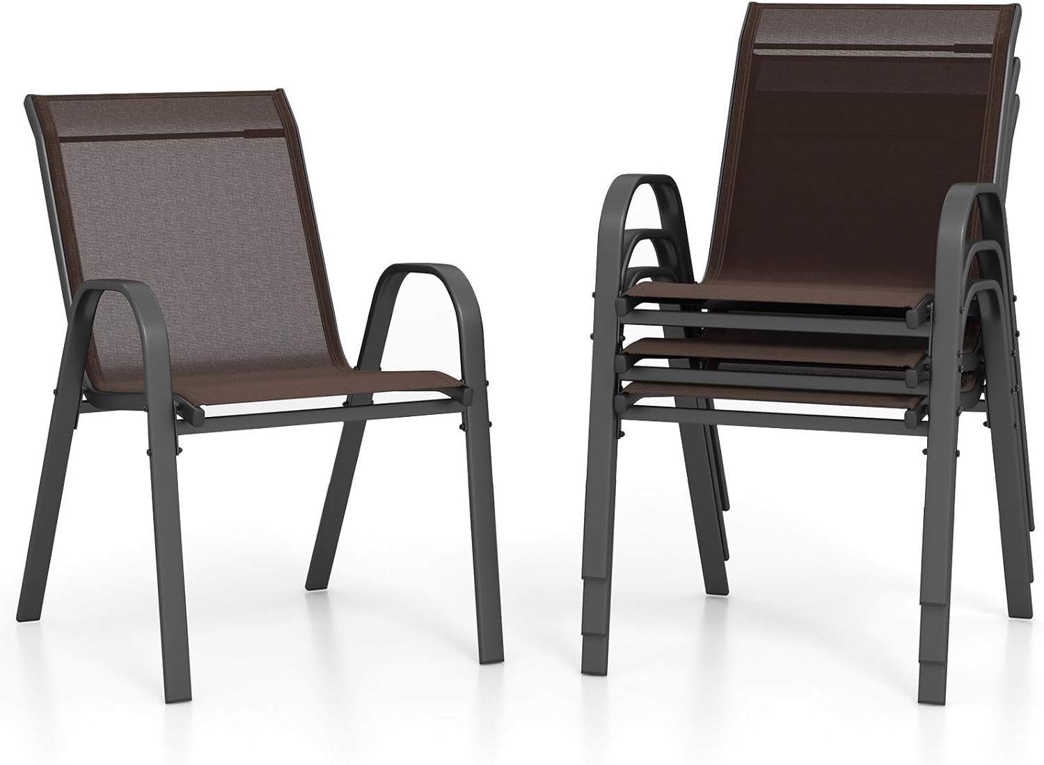 Lot de 4 chaises de jardin empilables, fauteuil de terrasse confortable avec accoudoirs dossier (brun,4)