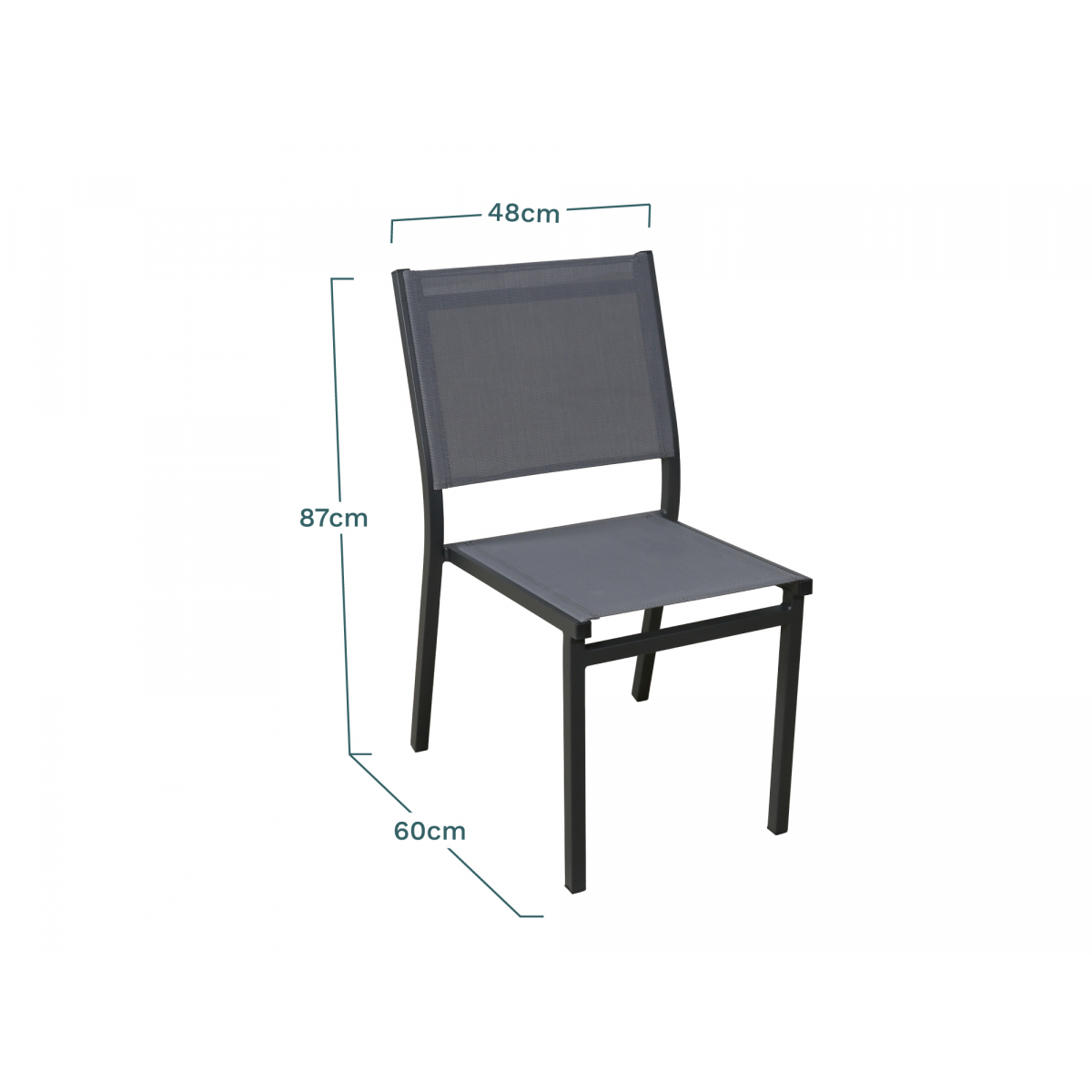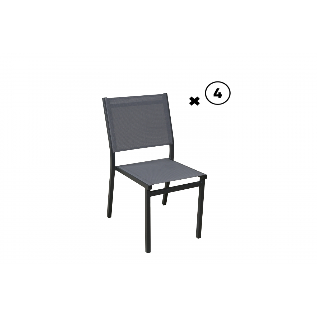 Lot de 4 Chaises de Jardin En Texaline et Aluminium - Meuble de Jardin - Gris Anthracite Empilable 60X48X