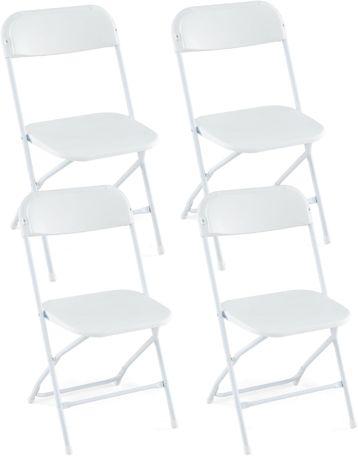 | Libellé | Lot de 4 chaises de jardin pliantes, chaises d´extérieur avec dossier en plastique, cadre en métal, blanc |