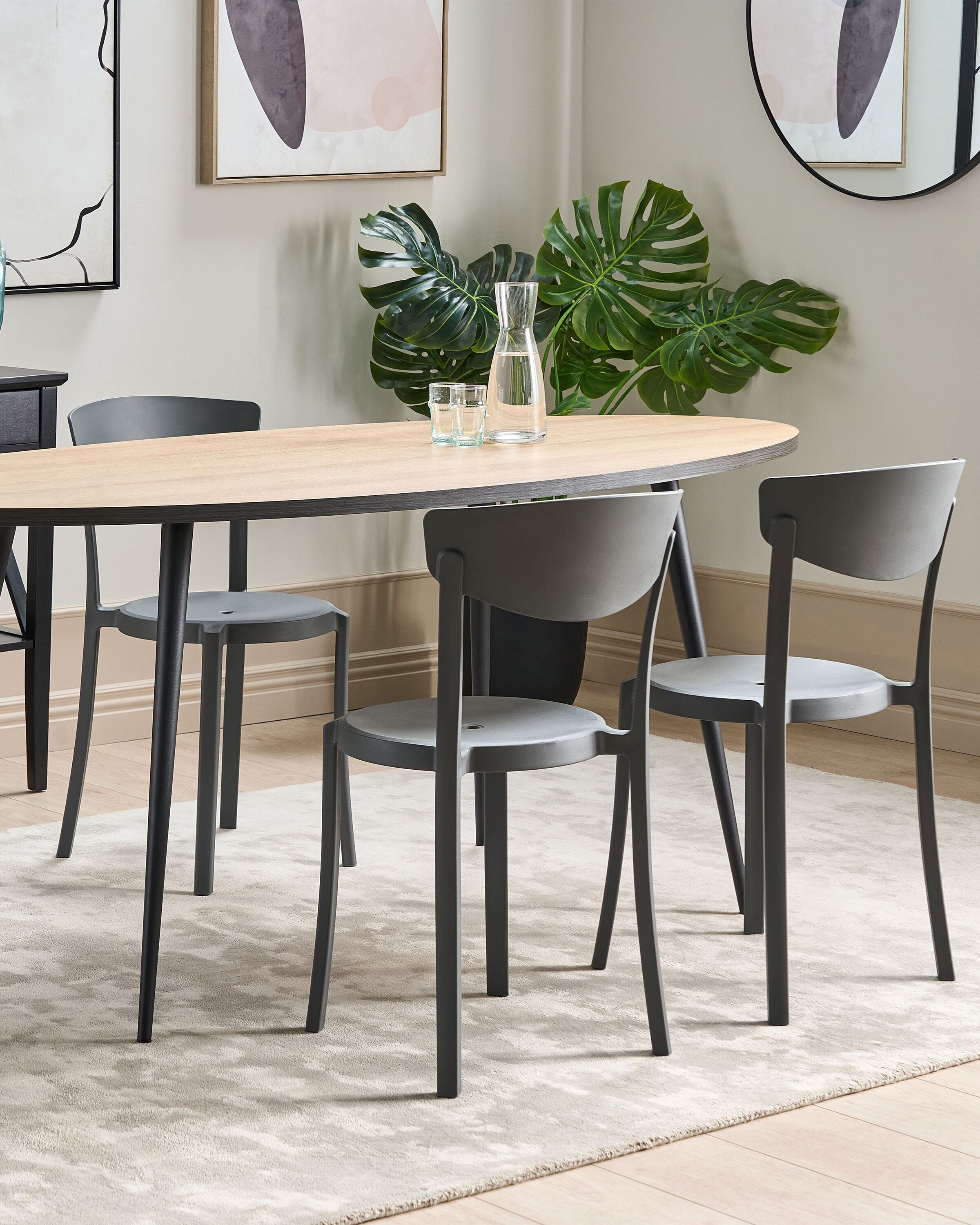 Chaises empilables pour intérieur et extérieur. Ces chaises minimalistes sont le complément parfait pour améliorer votre espace extérieur ou votre salle à manger. Avec leur structure légère et empilable, accompagnée d'une finition mate élégante et d'un design contemporain, elles allient sans effort style et fonctionnalité. C'est un choix idéal pour toute salle à manger, car la surface en plastique peut être nettoyée sans effort. La forme simple des chaises leur permet de s'intégrer facilement à tout style de décoration moderne