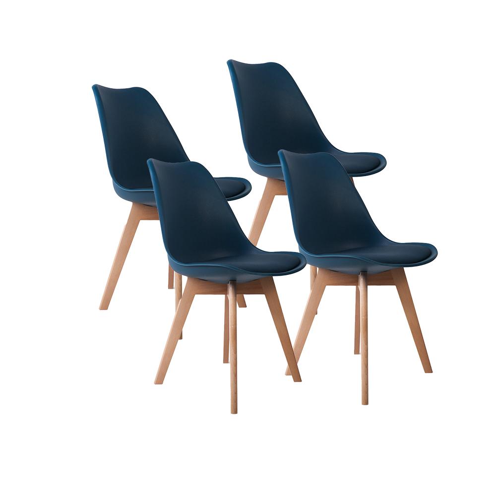- CARACTÉRISTIQUES TECHNIQUES : couleur : bleu canard, quantité : x4, matière pieds : bois hêtre, matière fauteuil : polypropylène, matière galette d'assise : similicuir polyuréthane, dimensions : Dimensions : L. 45 x l. 53 x H. 83 cm, hauteur d'assise : 45 cm, profondeur d'assise : 46,5 cm, montage facile, chaise à monter soi-même (notice et pièces incluses), livré en 1 carton