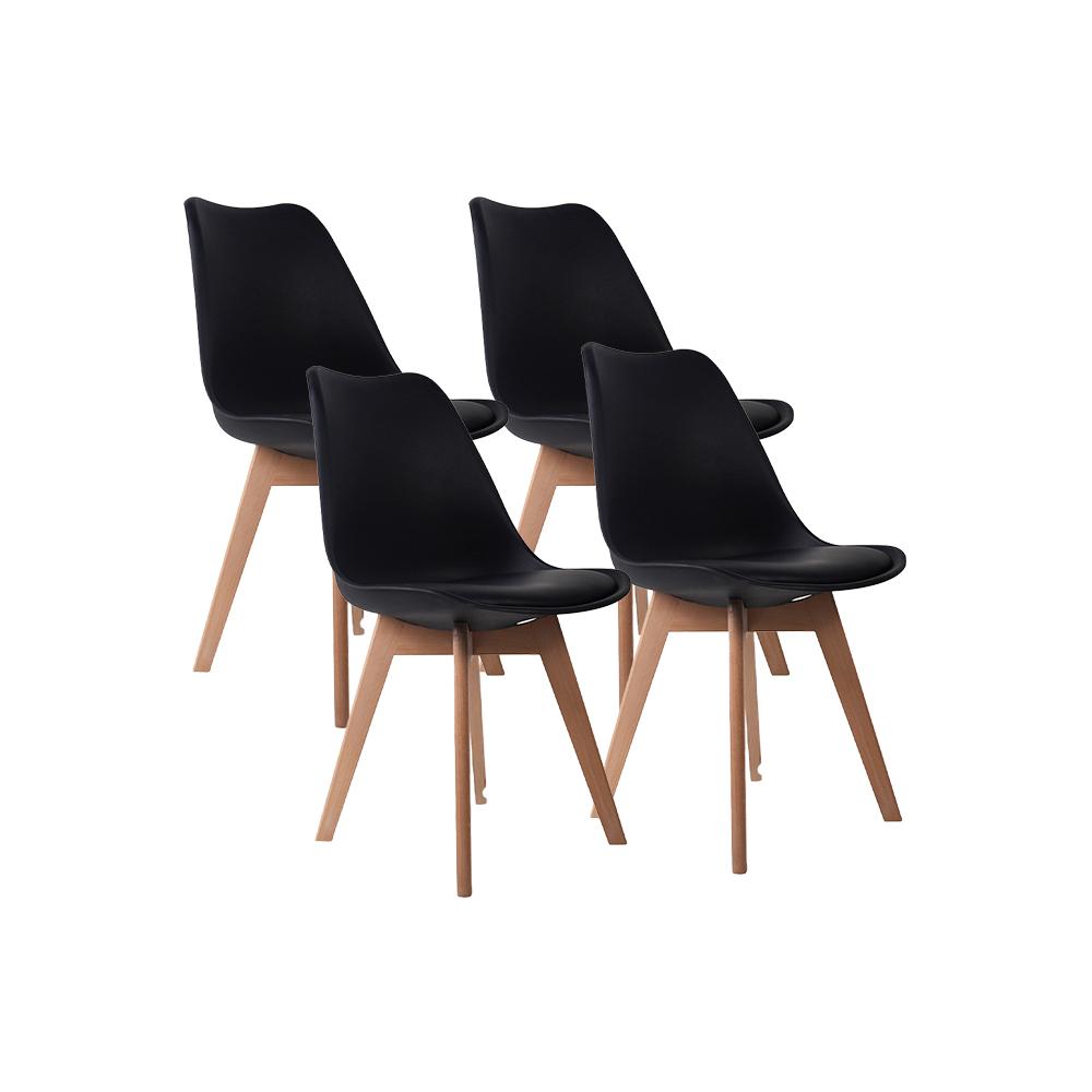 - CARACTÉRISTIQUES TECHNIQUES : couleur : noir, quantité : x4, matière pieds : bois hêtre, matière fauteuil : polypropylène, matière galette d'assise : similicuir polyuréthane, dimensions : Dimensions : L. 45 x l. 53 x H. 83 cm, hauteur d'assise : 45 cm, montage facile, profondeur d'assise : 46,5 cm, chaise à monter soi-même (notice et pièces incluses), livré en 1 carton