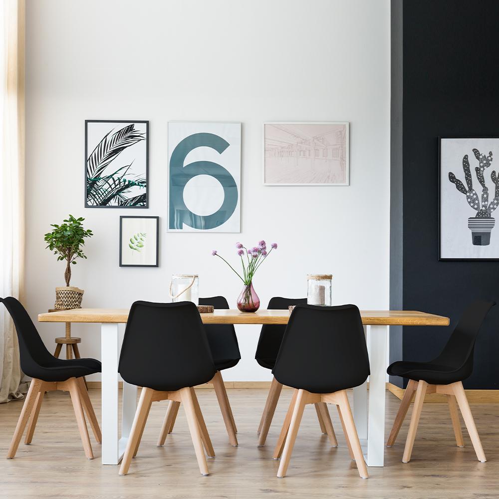 - CONFORT & ERGONOMIE : nos chaises design LAGOM de style nordique présentent une structure résistante et une assise ultra confortable. Les chaises possèdent un dossier ergonomique adapté au dos ainsi qu'un coussin d'assise rembourré pour un confort optimal.