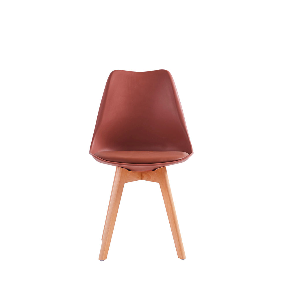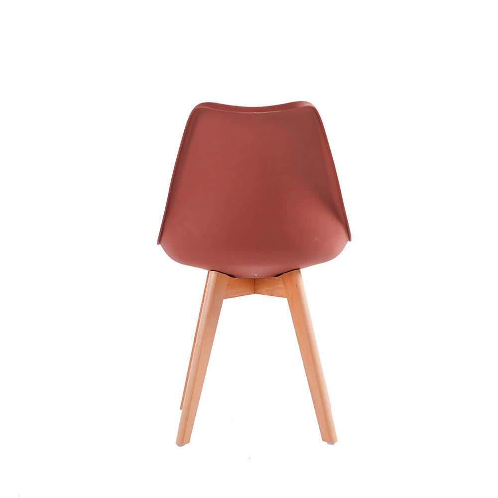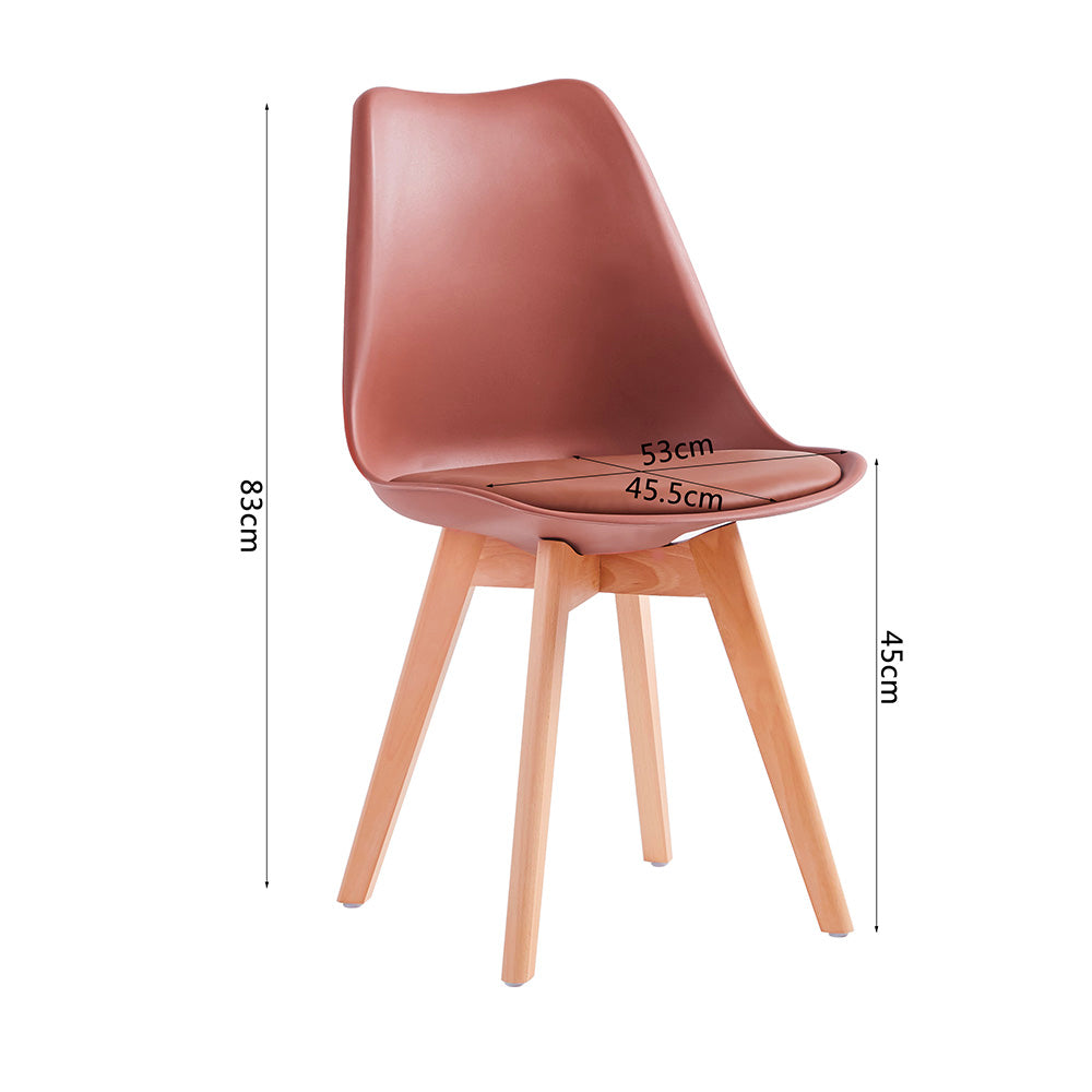 - CARACTÉRISTIQUES TECHNIQUES : couleur : terracotta, quantité : x4, matière pieds : bois hêtre, matière fauteuil : polypropylène, matière galette d'assise : similicuir polyuréthane, dimensions : Dimensions : L. 45 x l. 53 x H. 83 cm, hauteur d'assise : 45 cm, montage facile, profondeur d'assise : 46,5 cm, chaise à monter soi-même (notice et pièces incluses), livré en 1 carton