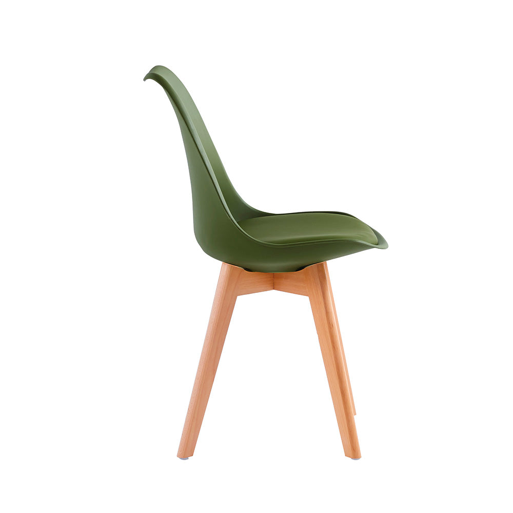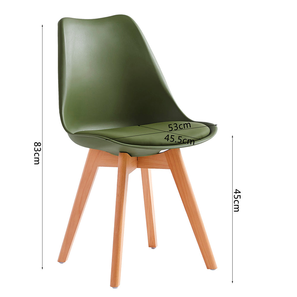- CARACTÉRISTIQUES TECHNIQUES : couleur : olive, quantité : x4, matière pieds : bois hêtre, matière fauteuil : polypropylène, matière galette d'assise : similicuir polyuréthane, dimensions : Dimensions : L. 45 x l. 53 x H. 83 cm, hauteur d'assise : 45 cm, montage facile, profondeur d'assise : 46,5 cm, chaise à monter soi-même (notice et pièces incluses), livré en 1 carton