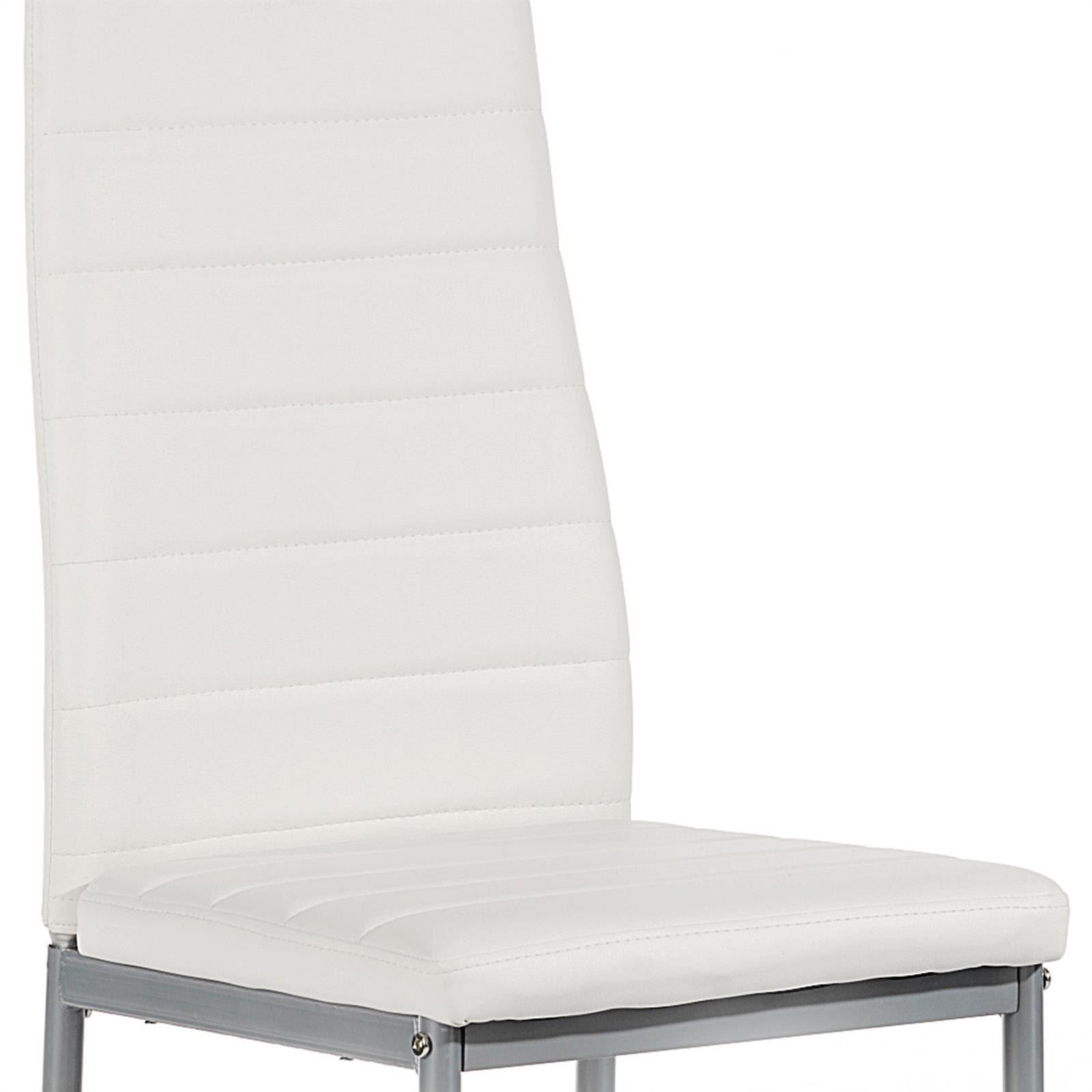 | Libellé | Lot de 4 chaises de salle à manger NATHALIE piètement métallique couleur aluminium revêtement synthétique blanc |
