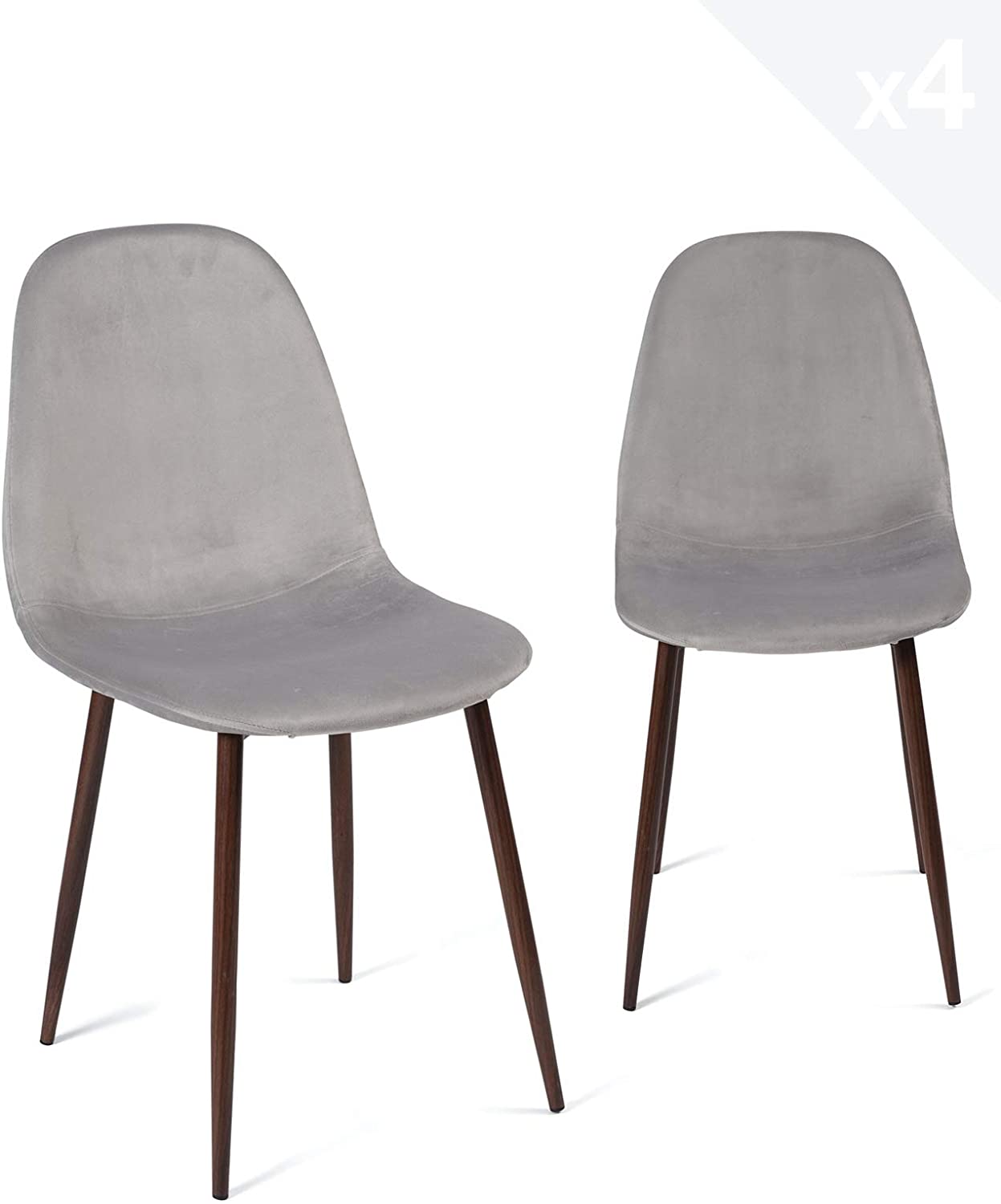 Un look moderne et épuré pour ces 4 chaises habillées d’un élégant tissu (3 coloris au choix) sur un piètement en métal teinté bois de noyer dans l’esprit nordique. Un confort sans faille avec un siège ergonomique rembourré et un revêtement agréable au toucher. Un excellent choix pour une salle à manger, ou dans le cadre d’un usage professionnel pour un restaurant, une salle de réception, etc.