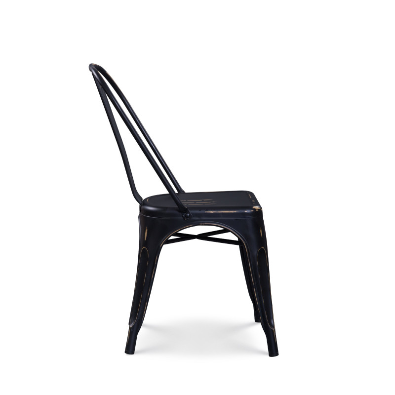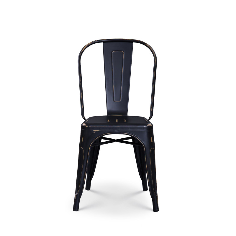 Lot de 4 chaises en métal noir mat style industriel - Effet vieillit
