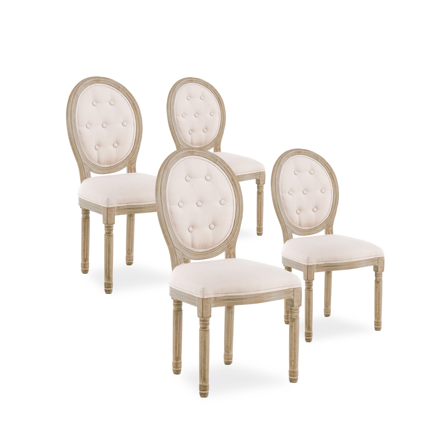 | Libellé | Lot de 4 chaises médaillon capitonnées Louis XVI tissu Beige |