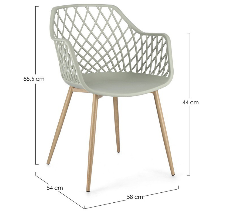 Ce lot de 4 chaises est idéal pour apporter une touche lumineuse et moderne à votre intérieur. Dotées d'une assise quadrillée en polypropylène, ces chaises se distinguent par leur design unique et leurs pieds en acier à l’effet bois naturel, qui allient stabilité et esthétisme. Caractéristiques des chaises : Matière : Pieds en acier avec finition effet bois naturel mat, et assise en polypropylène robuste pour un style moderne et durable. Couleur : Disponible en blanc, vert, marron clair et noir pour s’adapter à différents types de décors. Dimensions : Dimensions totales : L 58 x P 54 x H 85,5 cm Hauteur d’assise : 44 cm Fabrication : 100% italienne, garantissant un savoir-faire de qualité. Montage : Simple et rapide à assembler. Nombre de colis : 1, pratique pour la livraison et l’installation. Garantie : 5 ans, assurant une longévité et une durabilité optimales. Avantages clés : Design moderne et lumineux : L’assise quadrillée en polypropylène confère à ces chaises un style contemporain unique, parfait pour ajouter une touche de modernité à votre salle à manger ou cuisine. Stabilité renforcée : Les pieds en acier avec un effet bois naturel garantissent une solidité et une stabilité durables, tout en apportant une touche élégante et naturelle à votre décoration. Polyvalence : Adaptées à divers environnements, ces chaises sont idéales pour une utilisation dans une salle à manger, une cuisine, ou même un espace de bureau. Facile à monter : Livrées en un seul colis et faciles à assembler, ces chaises peuvent être installées rapidement et sans effort. Pourquoi choisir ce lot de chaises ? Avec leur design quadrillé unique, leur structure robuste, et leur finition en acier effet bois naturel, ces chaises sont la solution idéale pour ceux qui recherchent à la fois esthétisme et praticité. Leur fabrication italienne assure une qualité haut de gamme, tandis que leur garantie de 5 ans offre une tranquillité d’esprit supplémentaire. Optez pour ce lot de 4 chaises pour illuminer votre intérieur avec un mobilier au design moderne, tout en profitant de la stabilité et du confort qu’elles procurent. Option(s) sélectionnée(s) : - Couleur : Vert