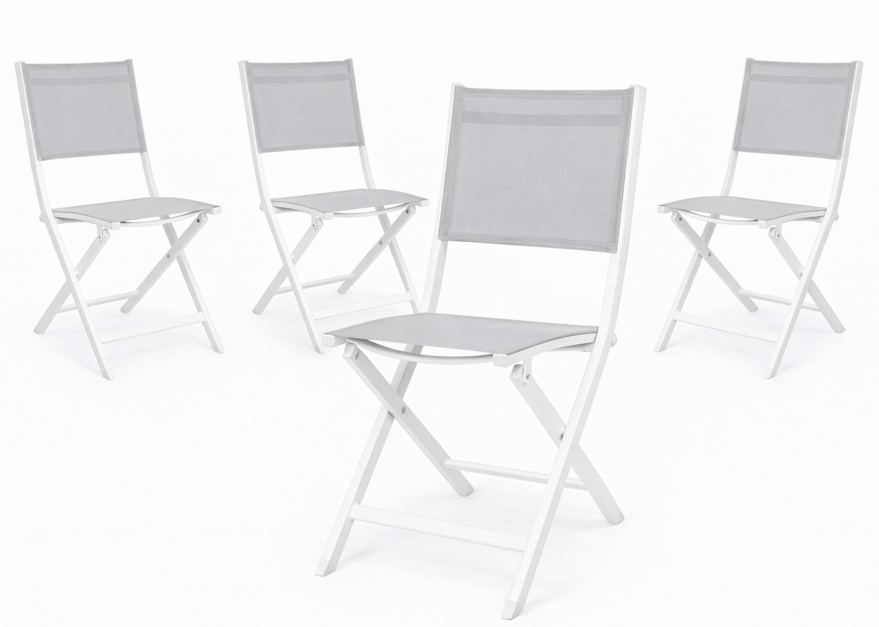 Lot de 4 chaises pliantes ELIN – Aluminium & textilène-Gris clair