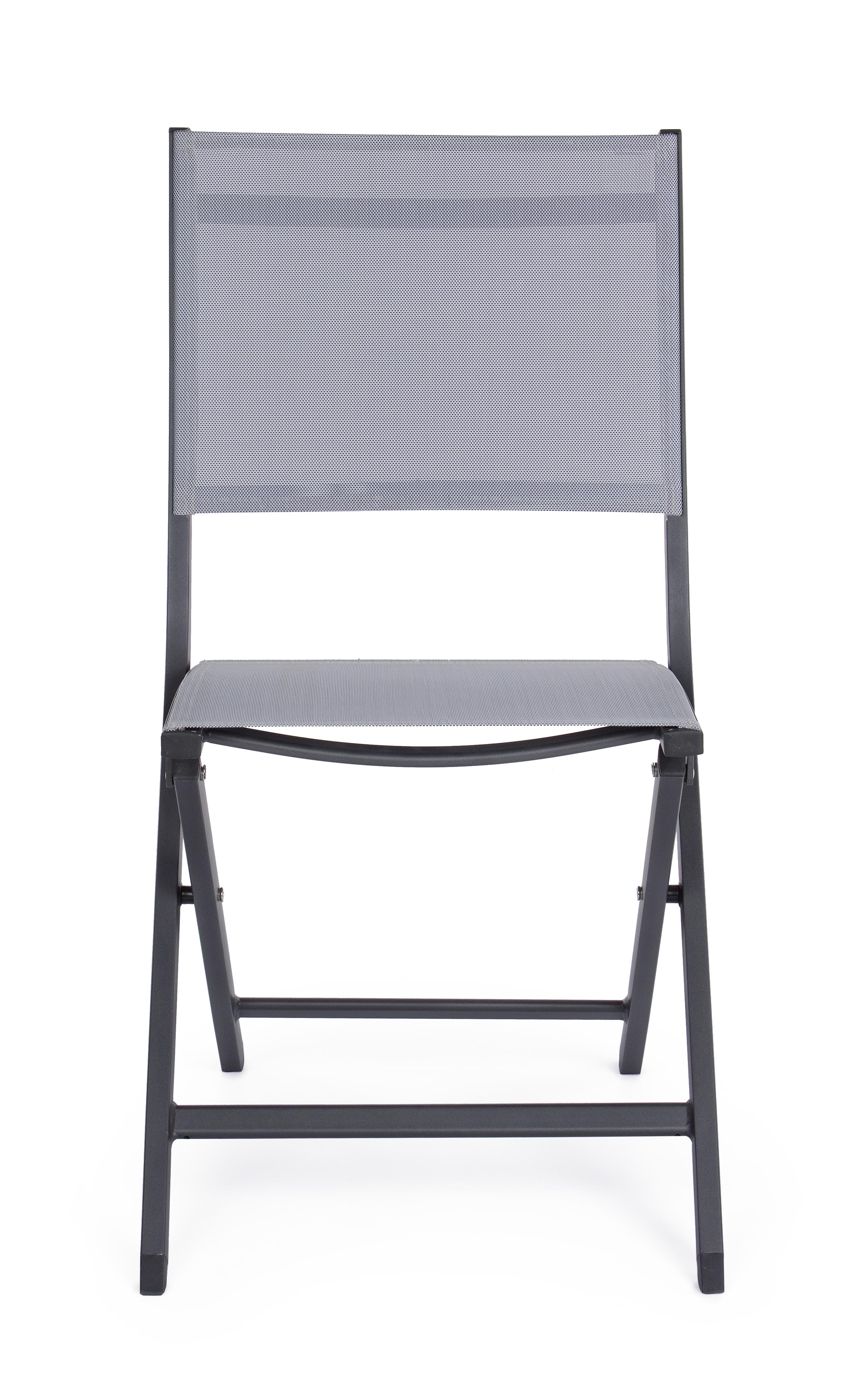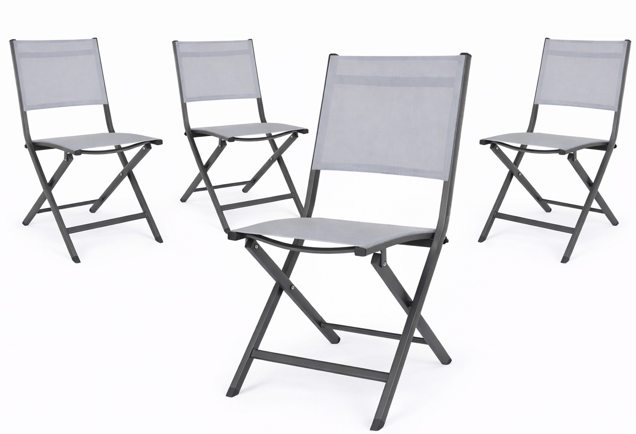 Lot de 4 chaises pliantes ELIN – Aluminium & textilène-Gris foncé