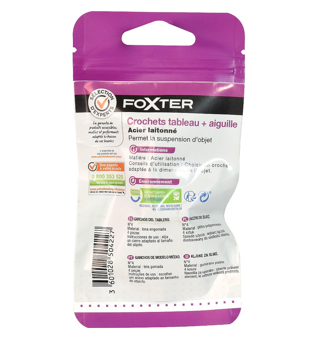 | Libellé | Lot de 4 cochets tableau + aiguille en acier - Sélection d'Expert - FOXTER |