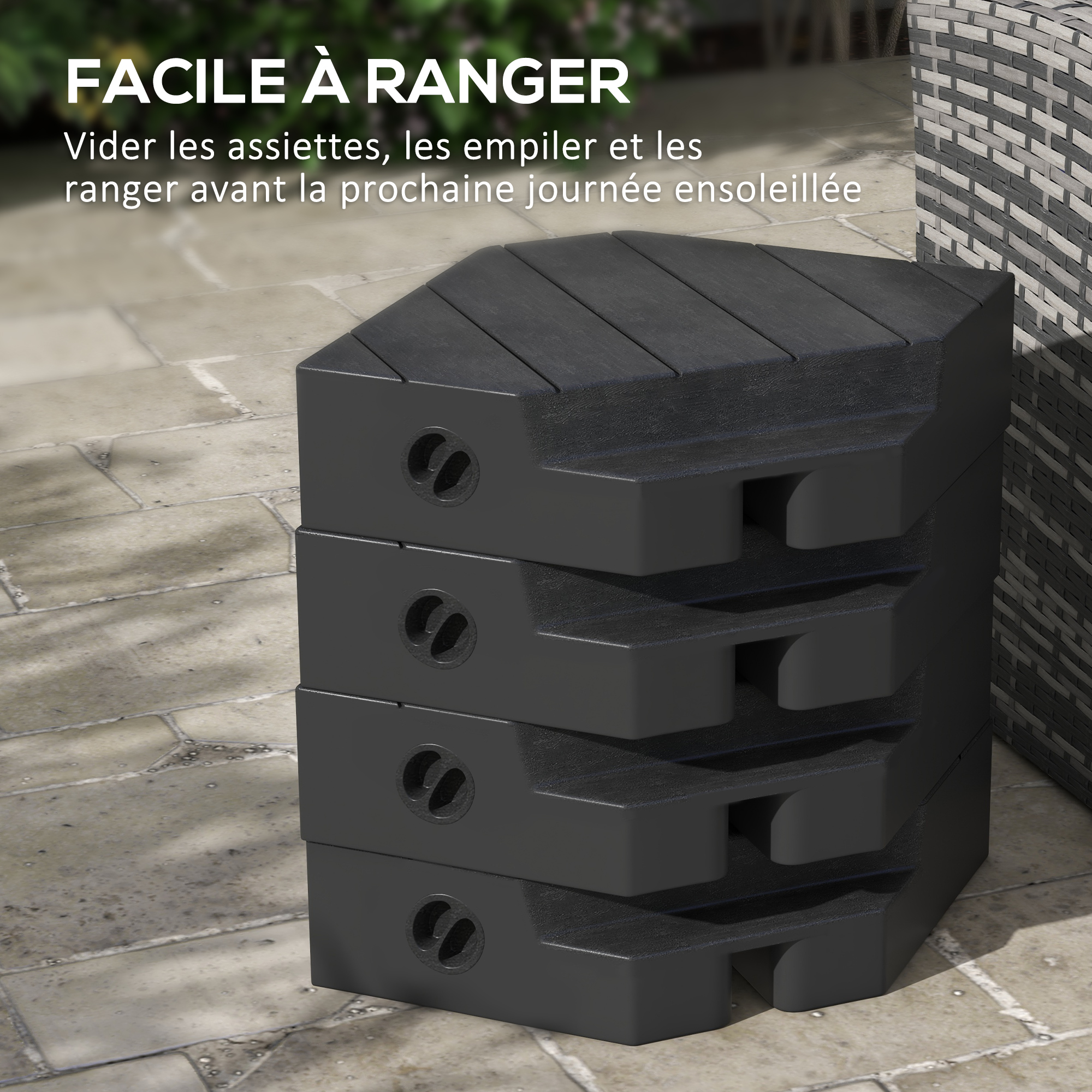 | Libellé | Lot de 4 dalles de lestage parasol déporté piètement croix - à lester eau ou sable - HDPE noir |