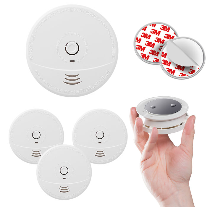 4 détecteurs de fumée (livré avec pile), munis d'un capteur optique, destinés à être installés dans des immeubles d'habitation, des appartements et des pièces à usage résidentiel. Les détecteurs de fumée et d'incendie, sont conçus pour avertir rapidement de la présence de fumée et d'incendie, afin de pouvoir réagir de manière adéquate face à cet évènement dangereux. Veuillez toujours consulter les réglementations en vigueur en matière d'avertisseur de fumée.