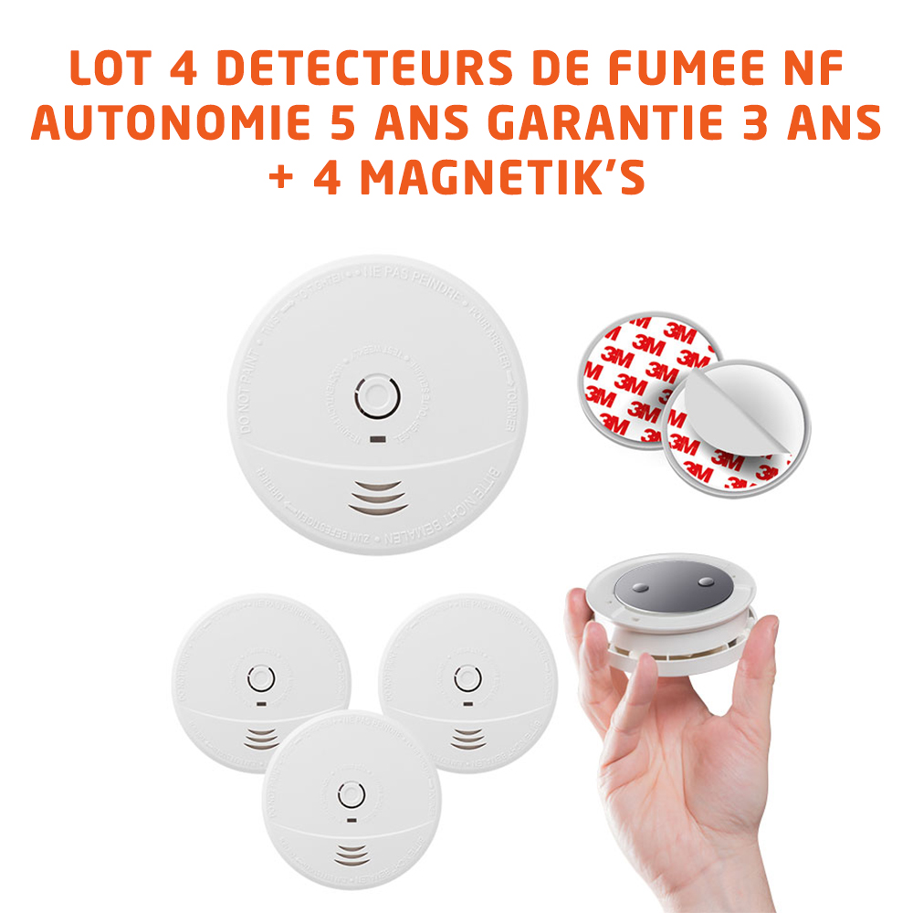 Libellé Lot de 4 détecteurs de fumée NF avec supports aimantés de fixation