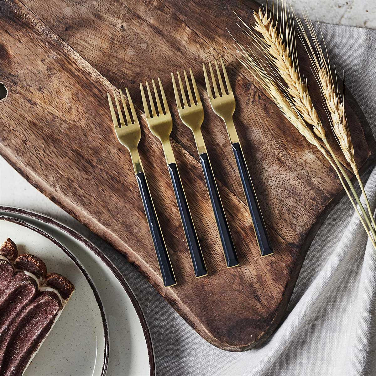 Lot de 4 Fourchettes à Dessert en Inox "Charlotte" 15cm Noir & Or