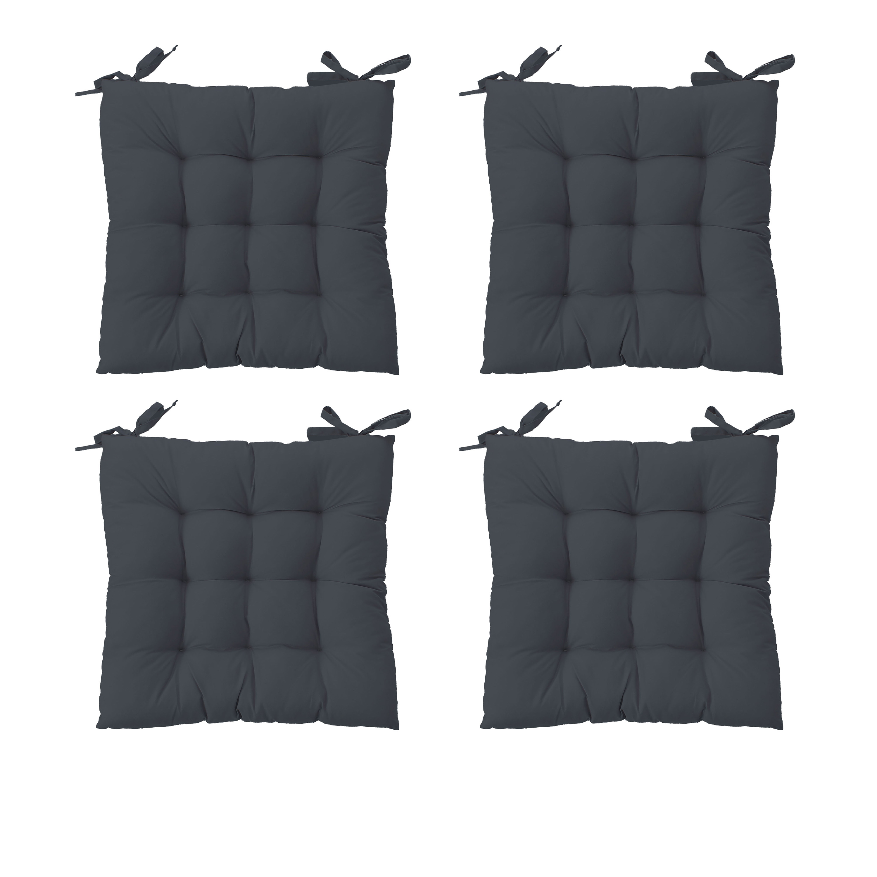 | Libellé | Lot de 4 Galettes de Chaise Piquée, Gris Foncé, carré 38x38cm, pour l’extérieure - traitement déperlant et anti-UV - Collection Jardin BORNEO |