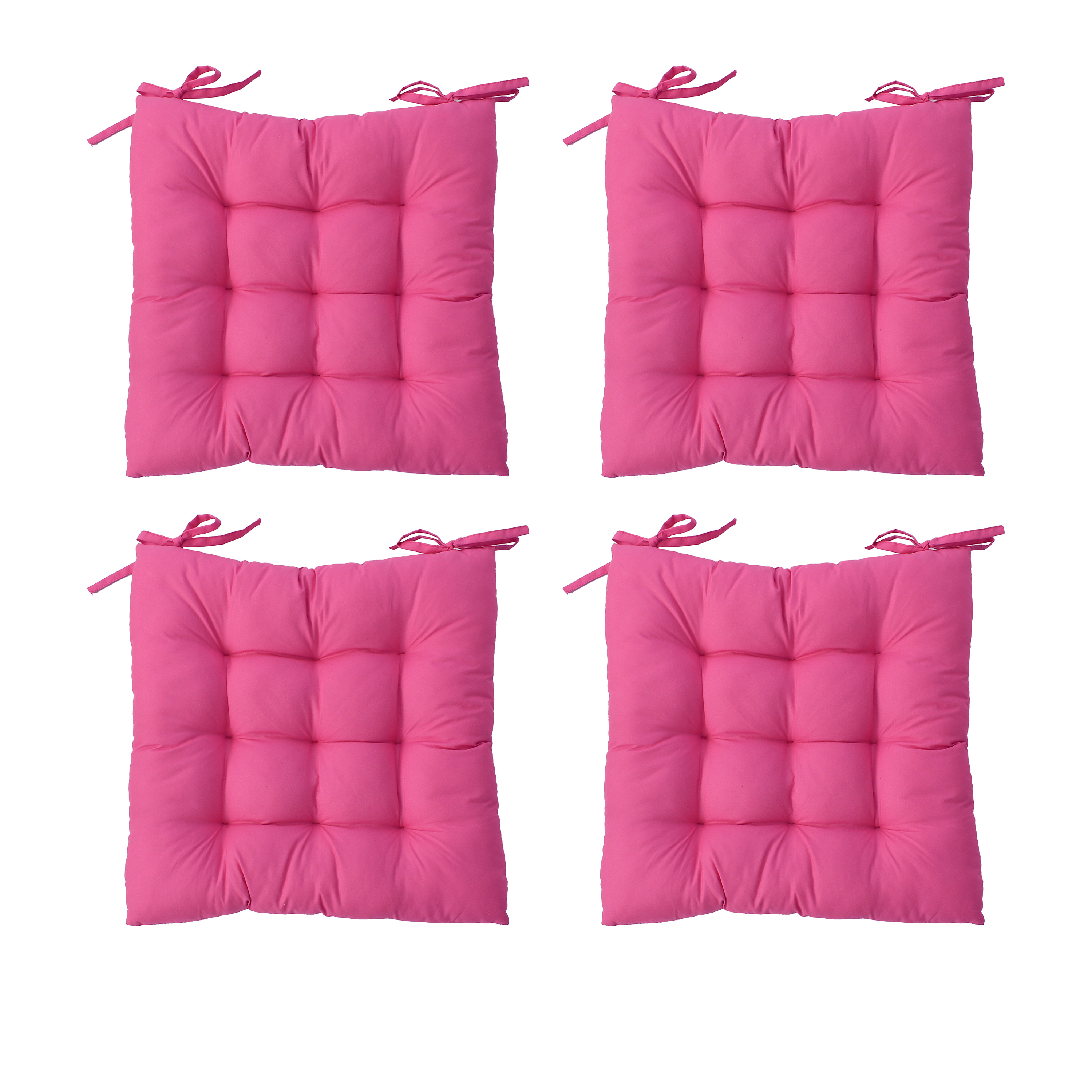 Lot de 4 Galettes de Chaise Piquée, Rose Fuchsia, carré 38x38cm, pour l’extérieure, avec traitement déper