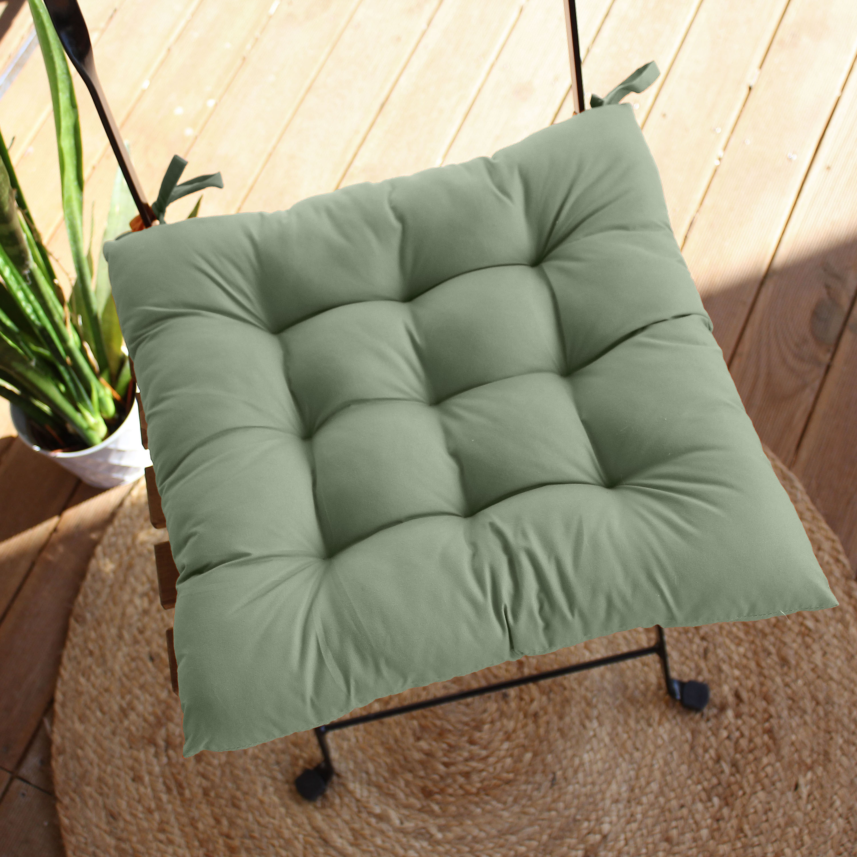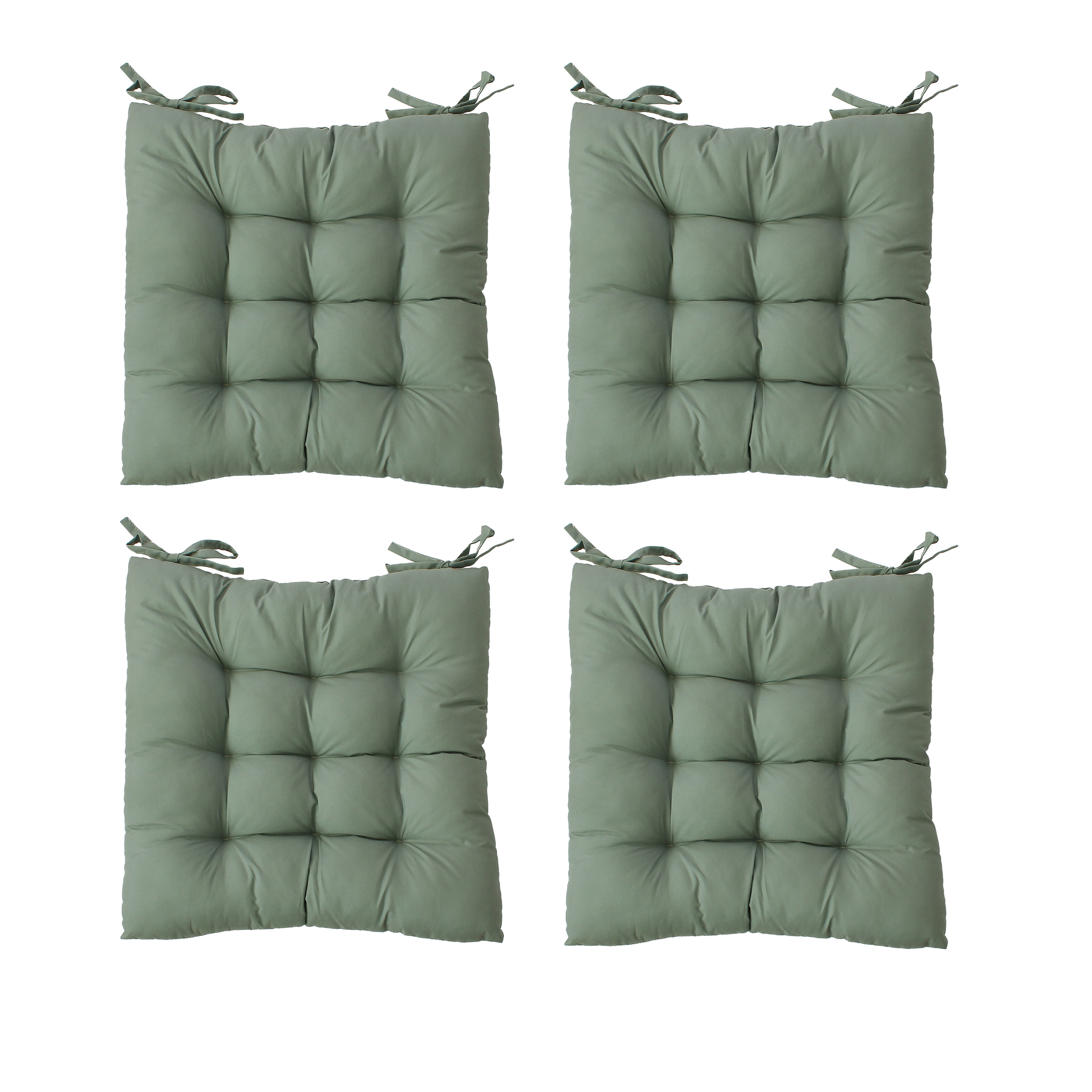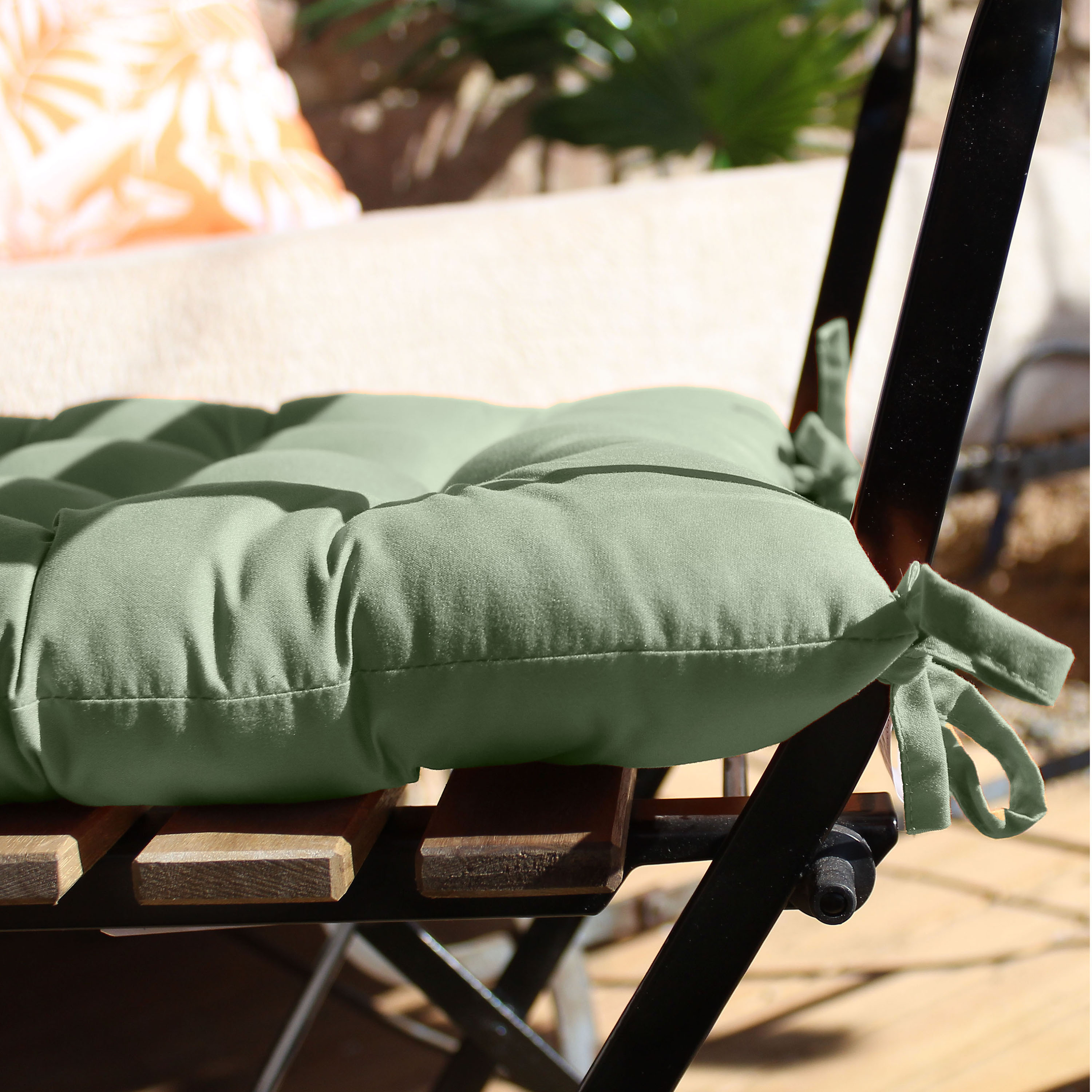 Lot de 4 Galettes de Chaise Piquée, Vert Argile, carré 38x38cm, pour l’extérieure - traitement déperlant