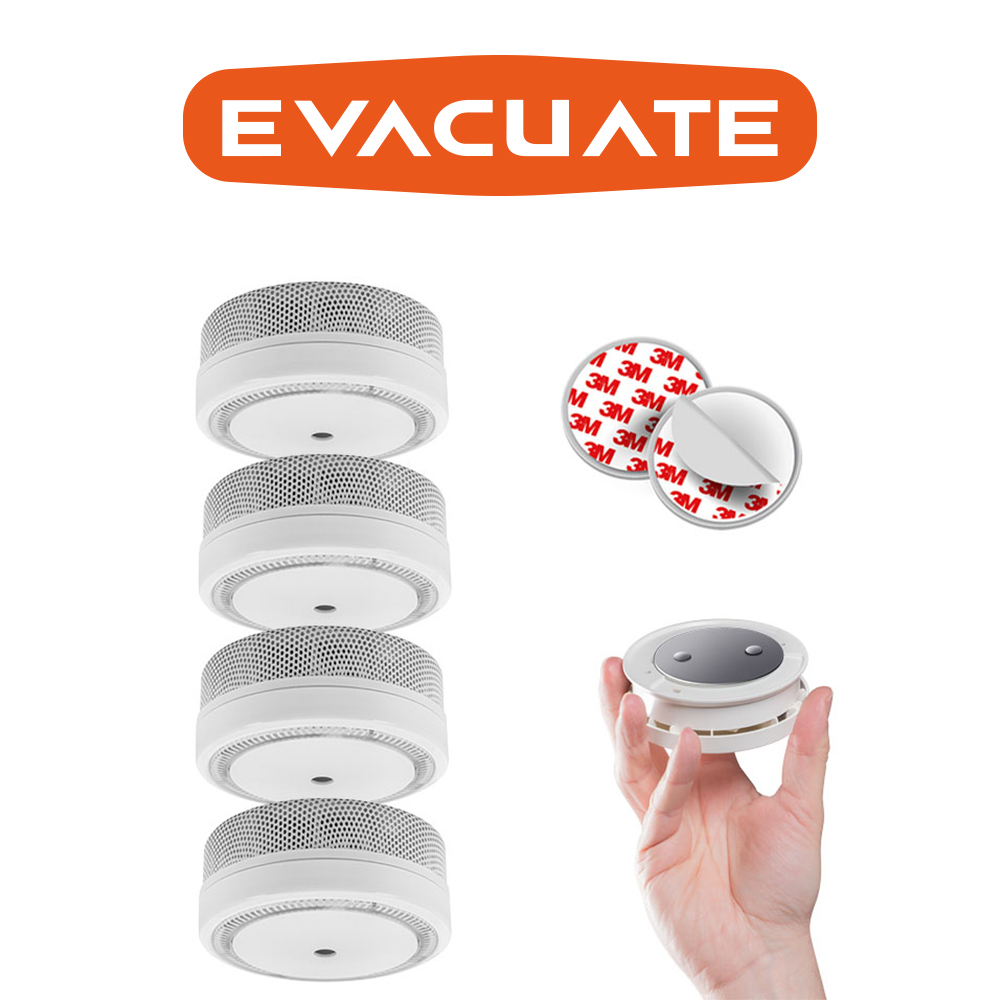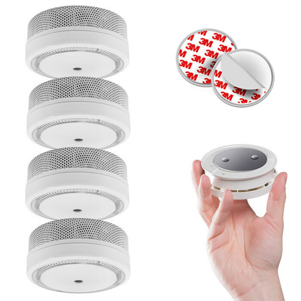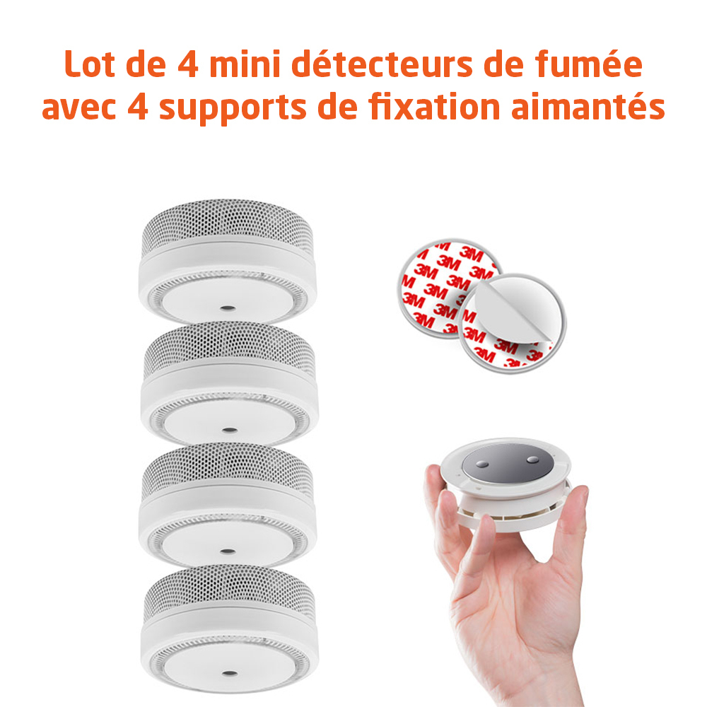 Lot de 4 mini détecteurs de fumée avec supports de fixation aimantés