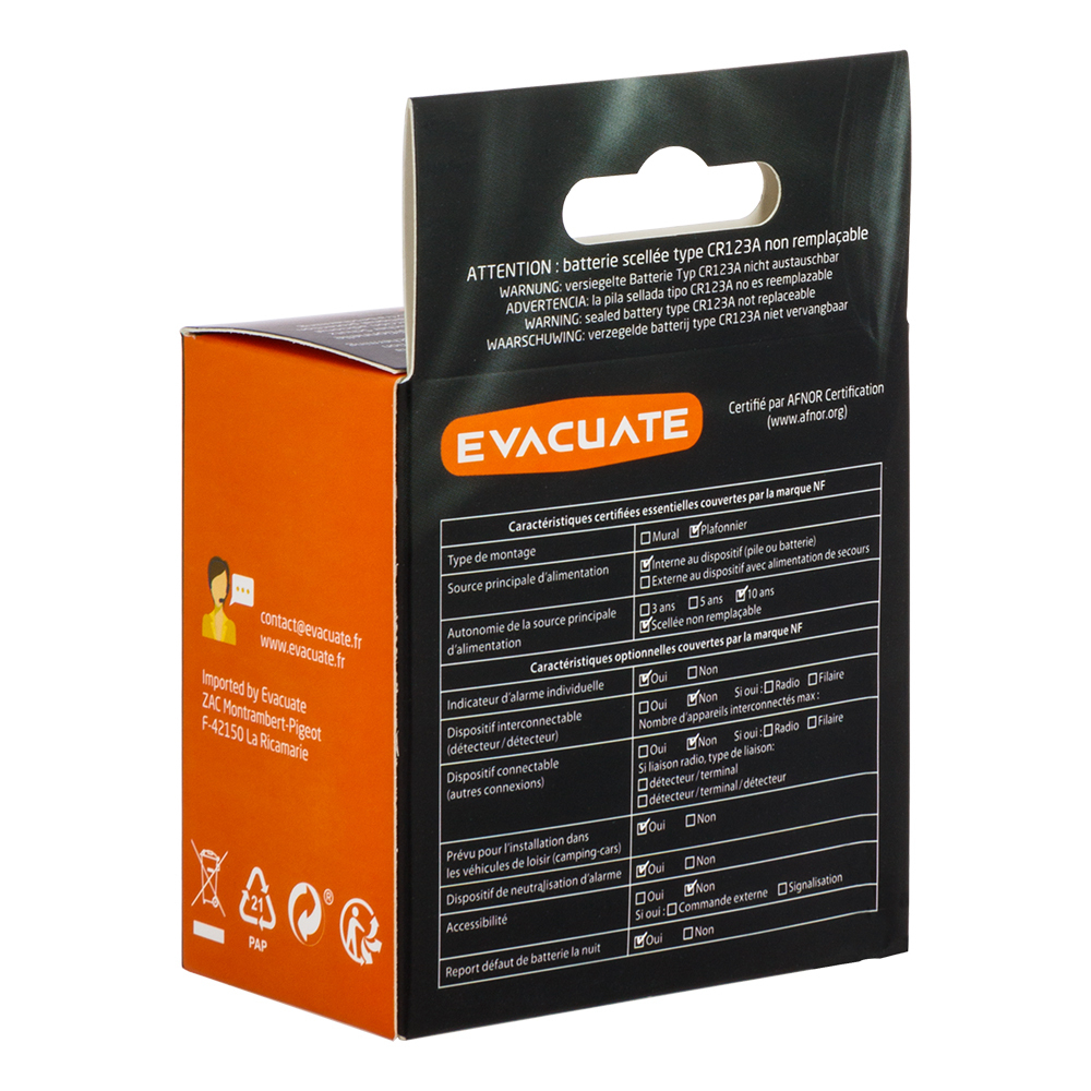 Lot de 4 détecteurs de fumée (livré avec pile scellée), muni d'un capteur optique, est destiné à être installé dans des immeubles d'habitation, des appartements et des pièces à usage résidentiel. Les détecteurs de fumée et d'incendie, sont conçus pour avertir rapidement de la présence de fumée et d'incendie, afin de pouvoir réagir de manière adéquate face à cet évènement dangereux. Veuillez toujours consulter les réglementations en vigueur en matière d'avertisseur de fumée.
