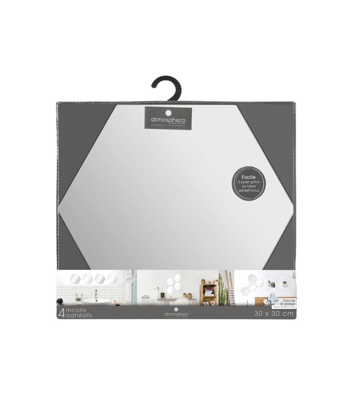 | Libellé | Lot de 4 Miroirs adhésifs Hexagones en Verre 30 x 30 cm |
