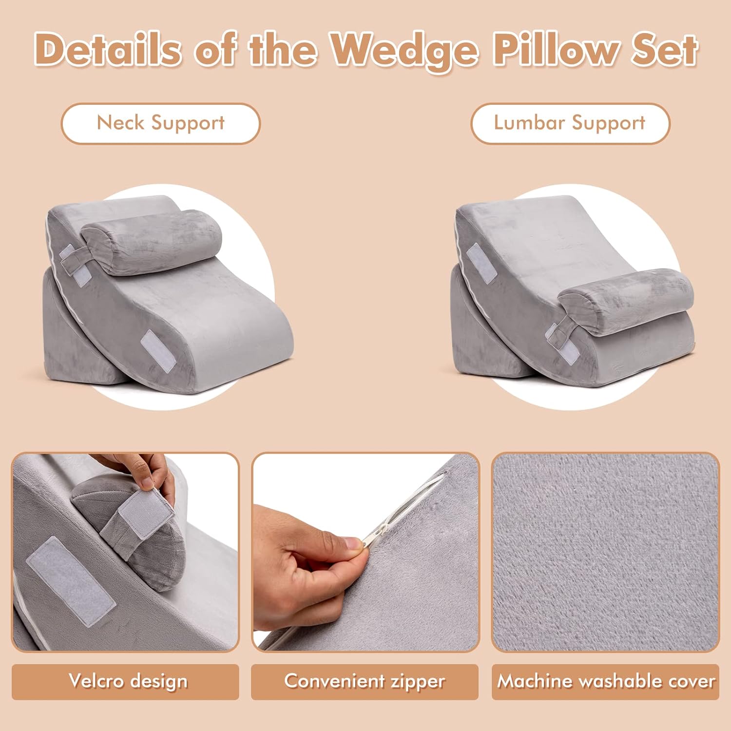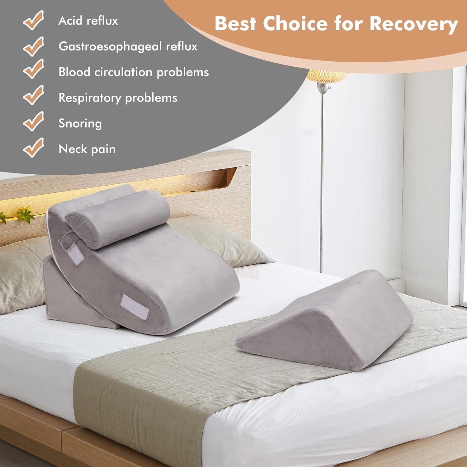 Cet ensemble d'oreillers réglables en 4 pièces peut être utilisé dans différents angles et positions pour fournir une élévation et un soutien personnalisés pour votre tête, votre cou, votre dos, votre taille, vos jambes ou vos genoux. Il aide à augmenter la circulation sanguine, à soulager les douleurs au cou, au dos et aux jambes, à réduire les ronflements et les brûlures d'estomac, ce qui est un choix parfait pour les personnes qui ont des problèmes de sommeil ou qui ont besoin d'une récupération post-opératoire.