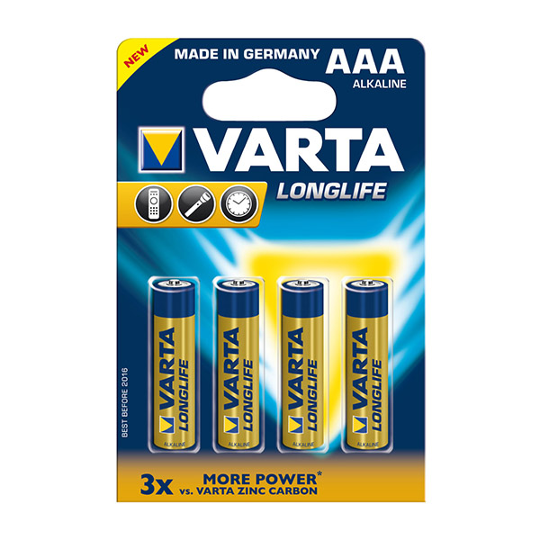 Lot de 4 piles type lr03 1.5 volts longlife extra - 4103101414 - varta