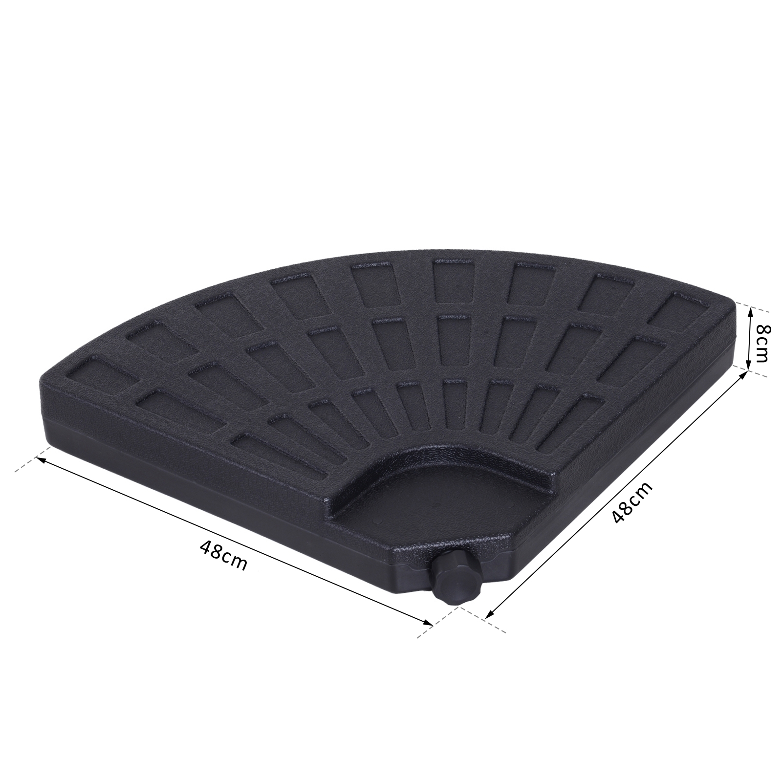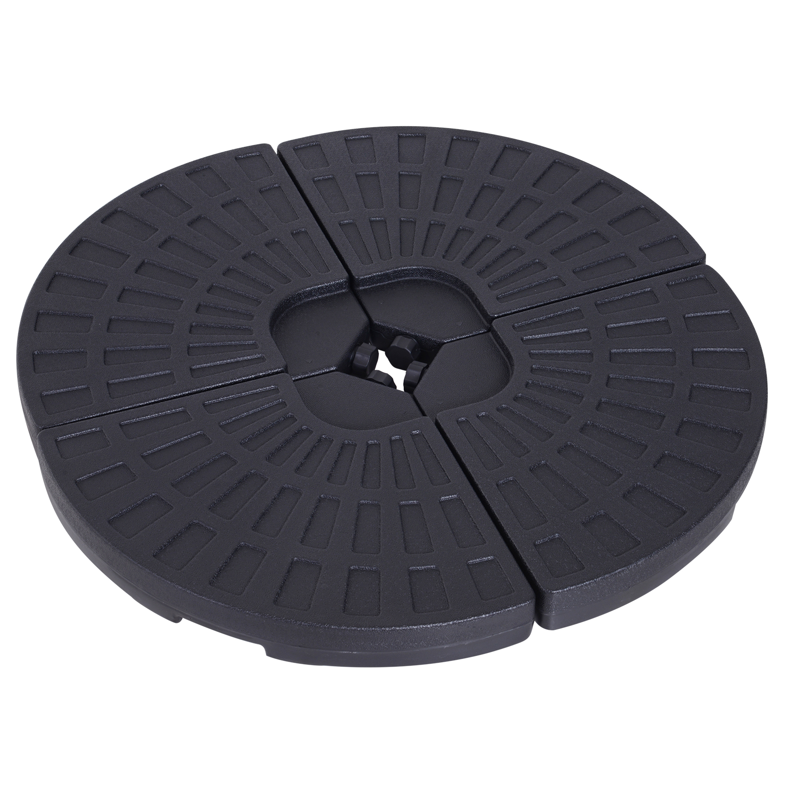 | Libellé | Lot de 4 poids de lestage pour parasols déportés dim. totales 48L x 48l x 8H cm polyéthylène haute densité noir |