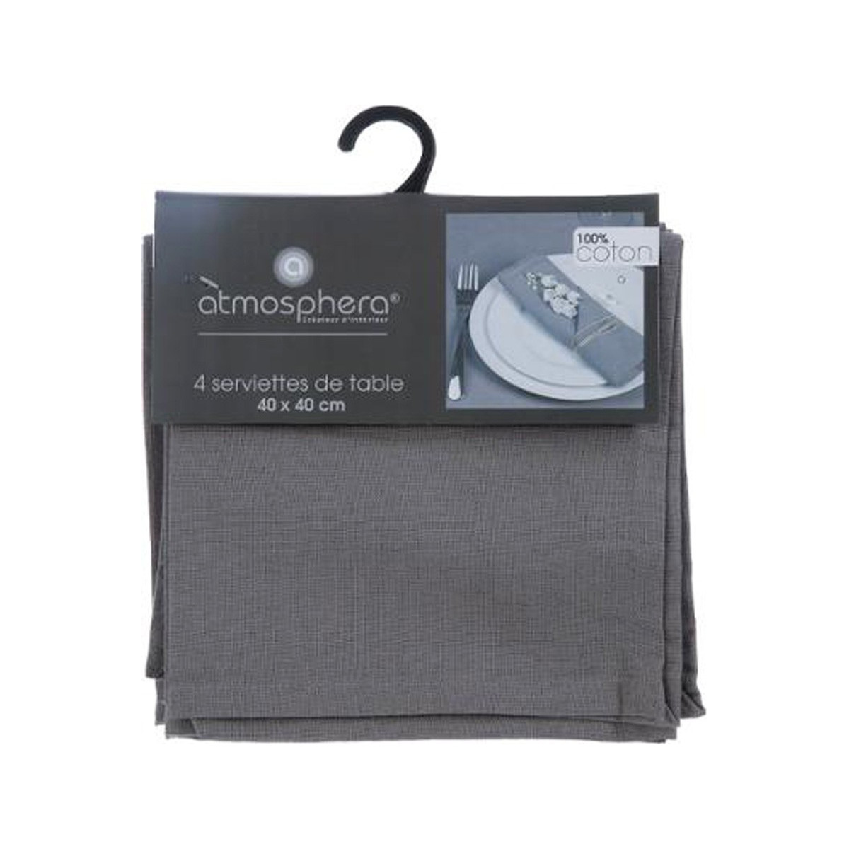 | Libellé | Lot de 4 Serviettes de table en Coton Gris clair 40 x 40 cm |