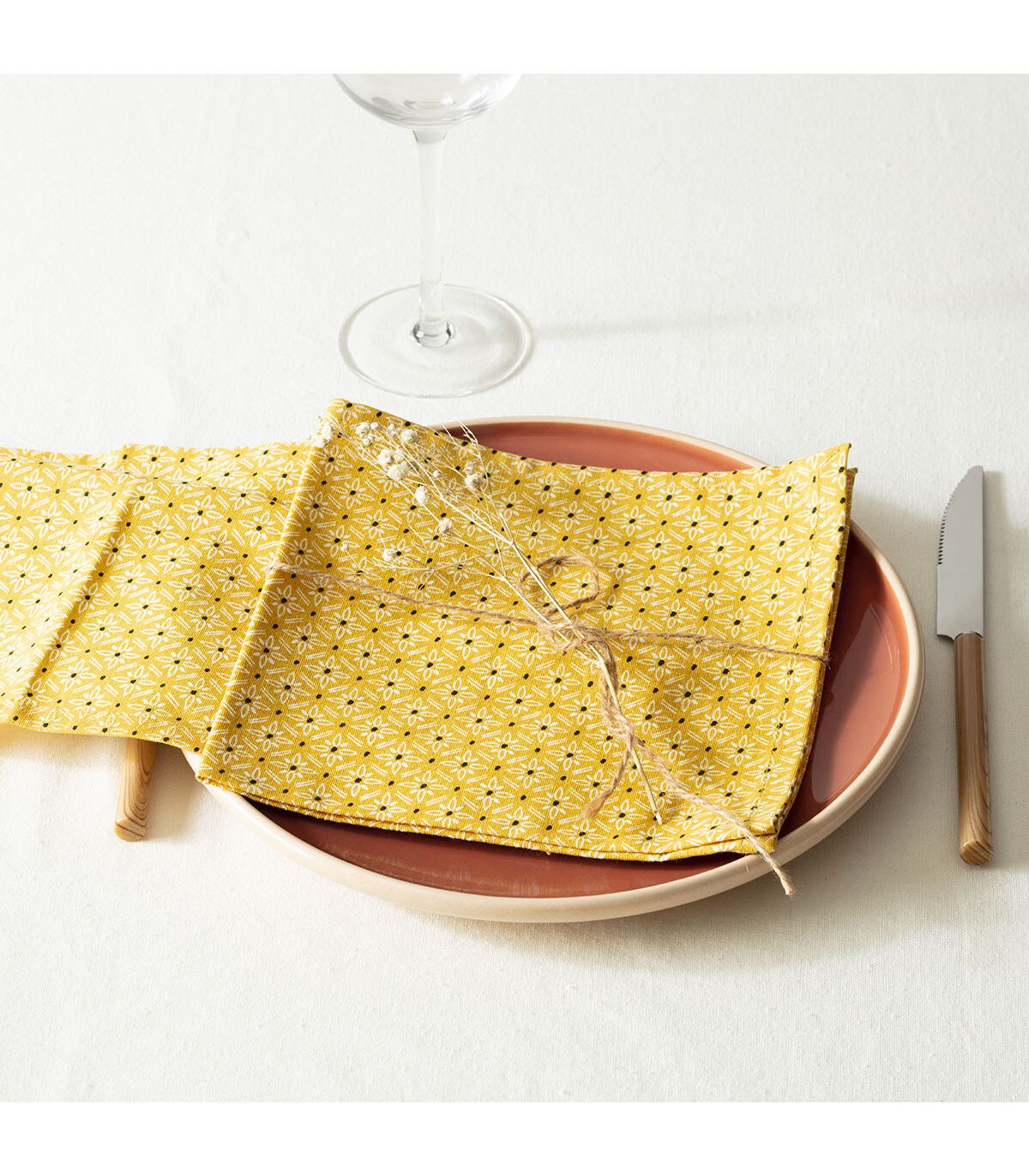 | Libellé | Lot de 4 Serviettes de table en Coton Ocre imprimé Paty 40 x 40 cm |