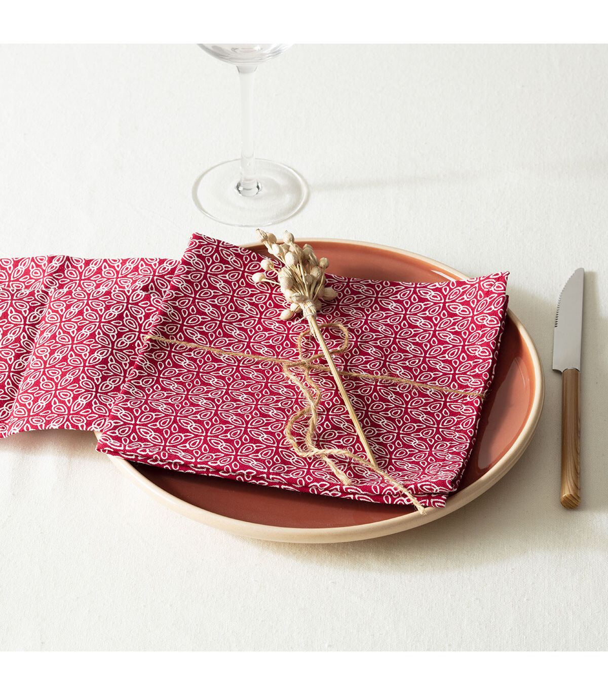 Lot de 4 Serviettes de table en Coton Rouge imprimé Olia 40 x 40 cm