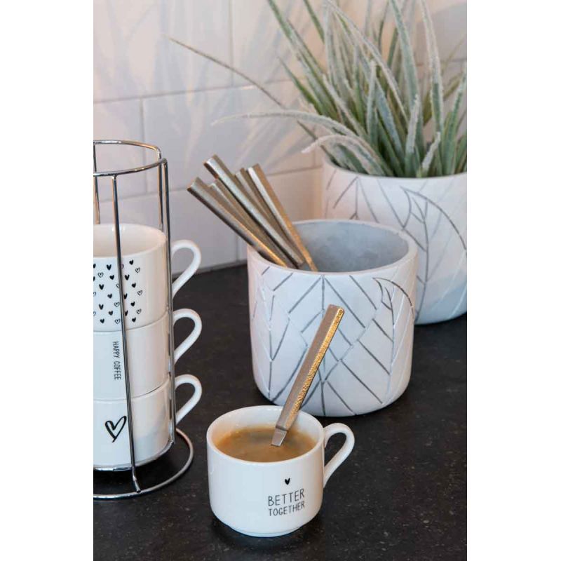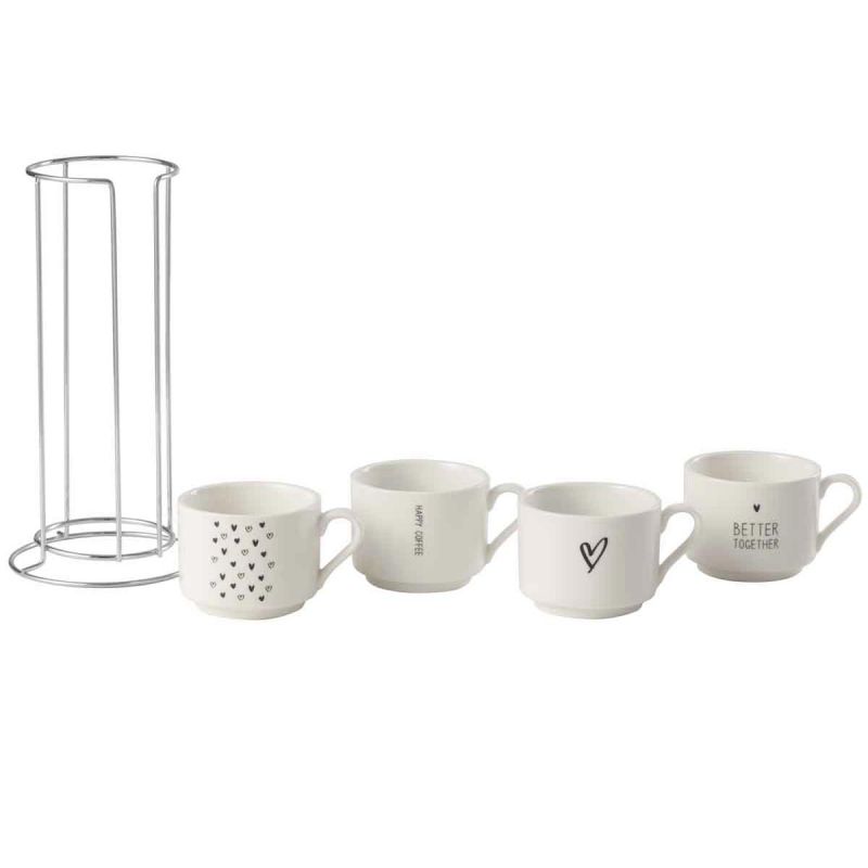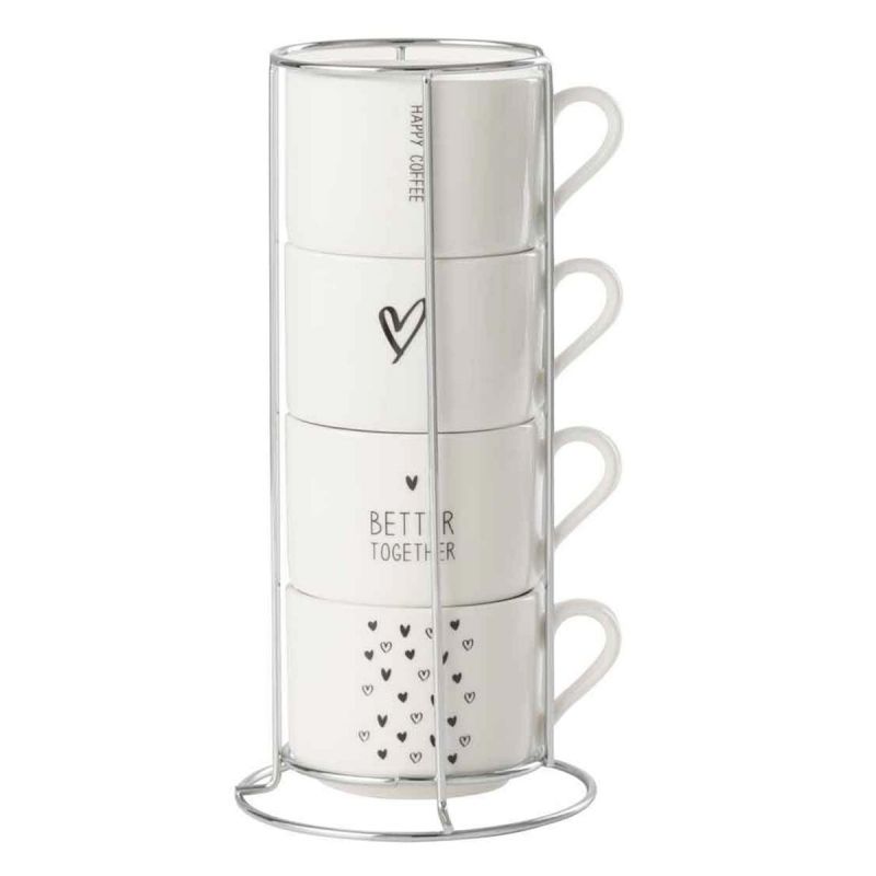 | Libellé | Lot de 4 Tasses sur Rack "Amour" 10cm Blanc |