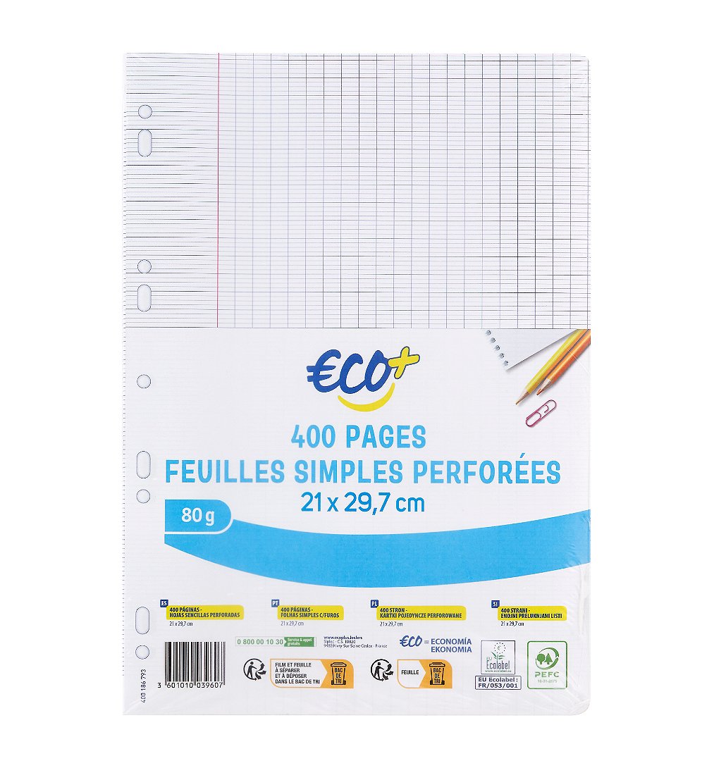 Lot de 400 feuilles simples 21x29,7cm grands carreaux - Eco+