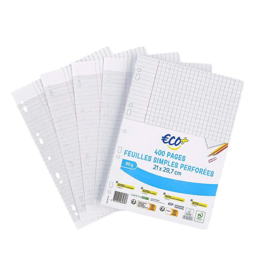 Feuilles 80g/m² perforées.