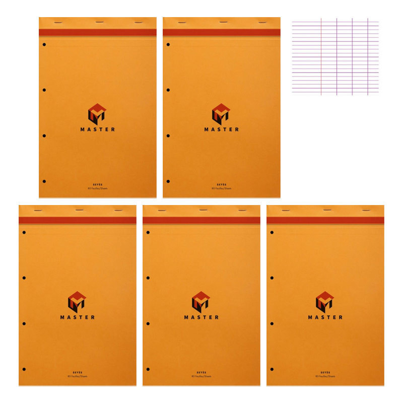 Lot de 5 blocs notes - A4 + - 21x 31,8cm - Grands Carreaux - 80 feuilles - Master