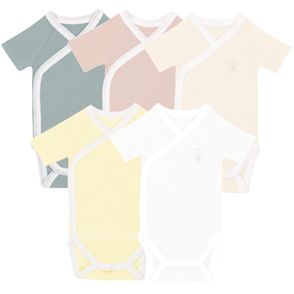 Lot de 5 bodies MC-100% coton biologique- 1 à 6 mois