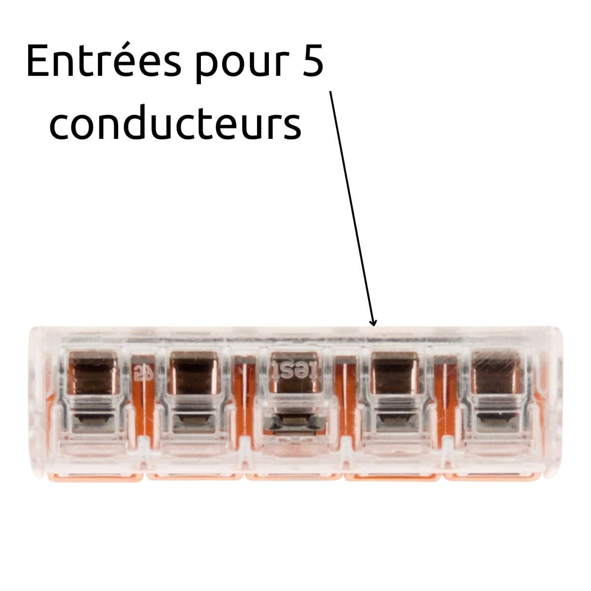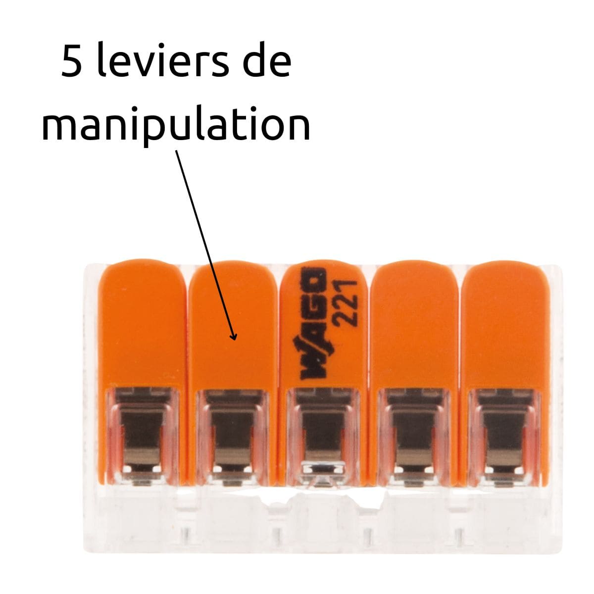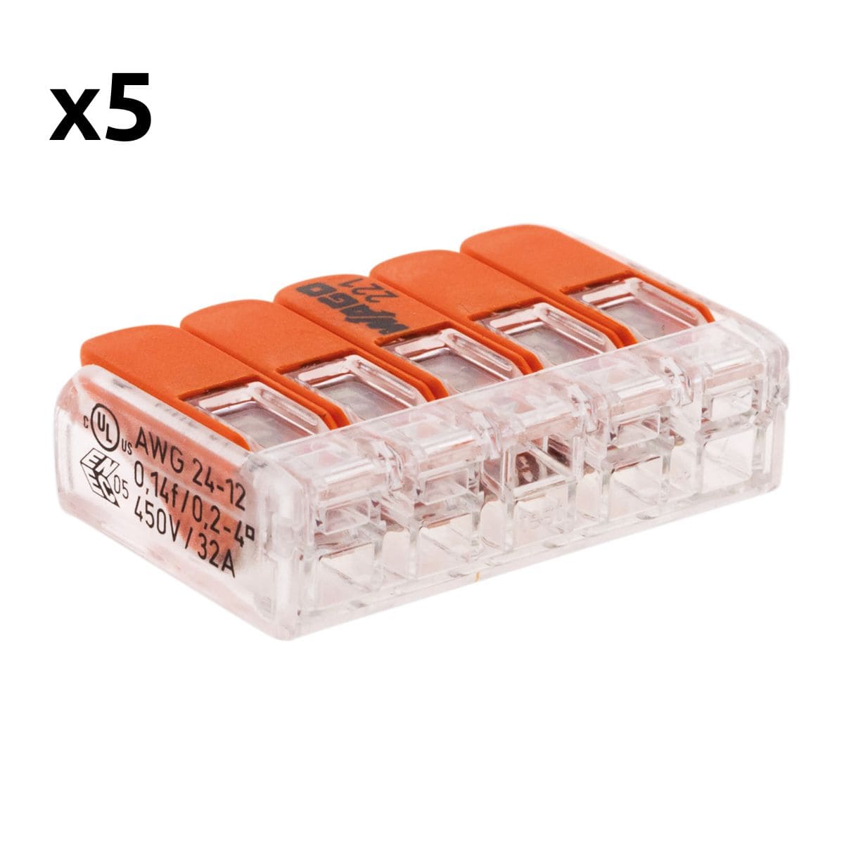 Lot de 5 bornes de raccordement S221 Compact - Connexion rapide - 5 conducteurs avec leviers 4mm² - oran