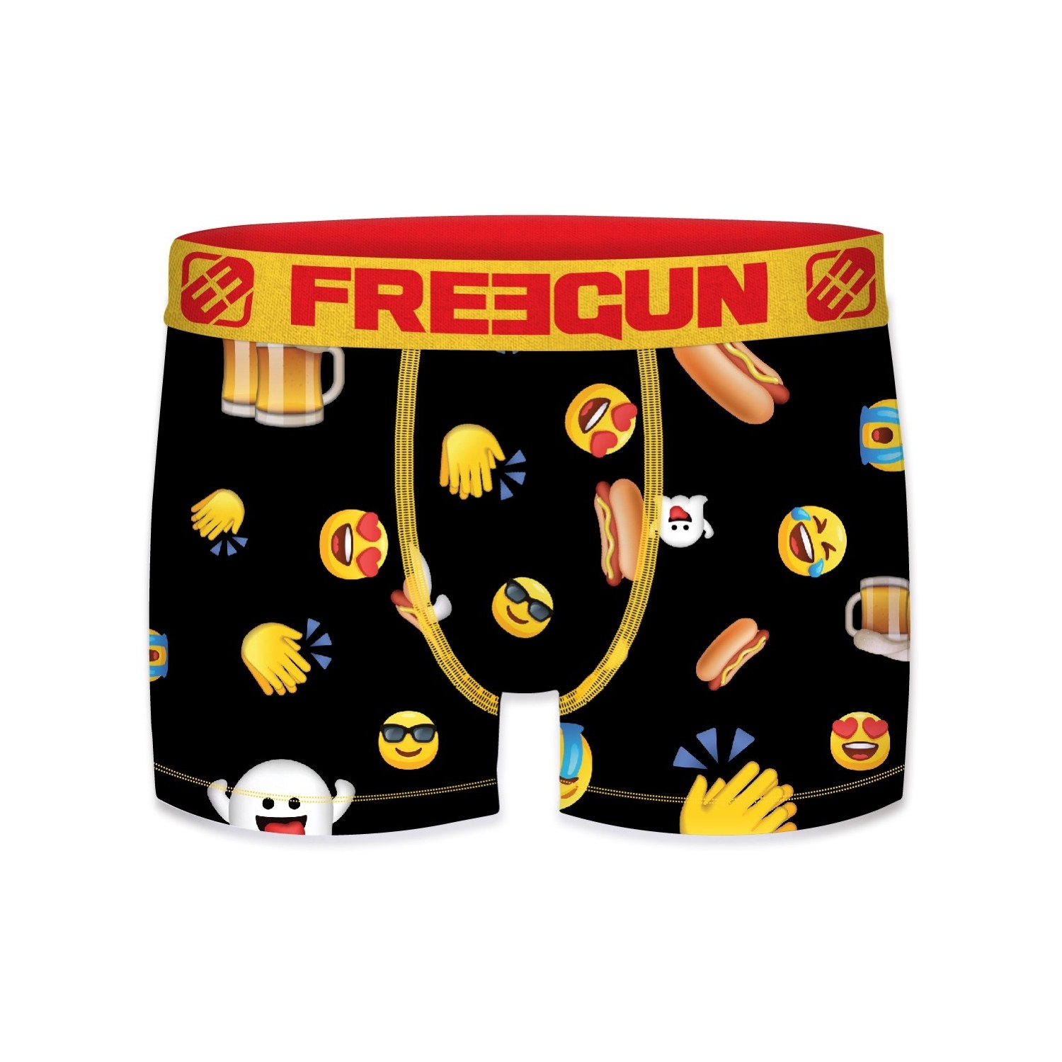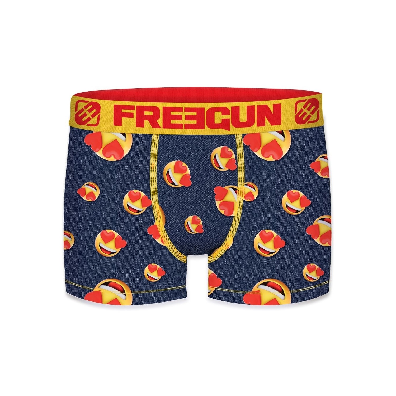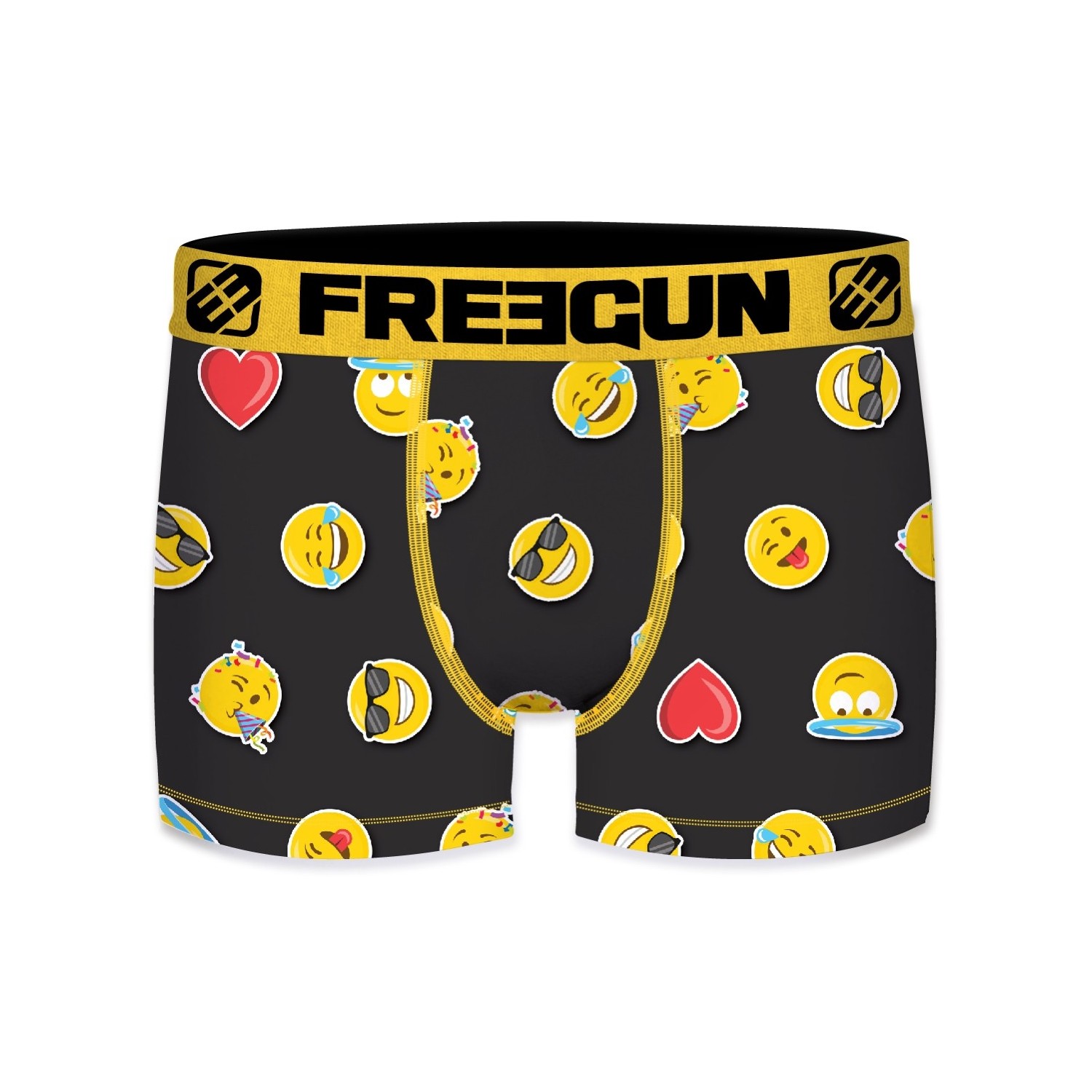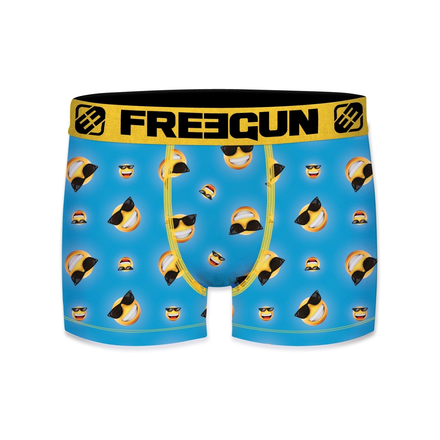 Nos boxers Freegun Homme Imprimé Imprimé sont concus à base de 92% Polyester 8% Elasthanne / Doublure 100% Coton pour un maintien optimal, une liberté de mouvement inégalable avec l'elasticité proposé dans le tissu du sous-vêtement et un confort en tout circonstance grâce à la douceur du tissu microfibre et à la doublure en coton présente à l'interieur du slip Freegun. Les sous-vêtements Imprimé Freegun sont Confort,Respirant la ceinture élastique Large Jaune permet une tenue accrue sans gêne. Dans ce pack de boxers nous vous proposons différents coloris : Bleu, Jaune, Rouge, Noir. Ce lot de caleçons Freegun est lavable en machine à 30°C et resistera à la décoloration. Les imprimés Freegun sont dessinés en France, nos équipes graphistes recherchent sans cesse de nouveaux design inédits à arborer sur nos calecons. Ces boxers Freegun sont disponibles en taille S, M, L, XL, XXL, conformément aux standards de tailles européennes. Ne pas sécher au sèche linge, ne pas repasser.
