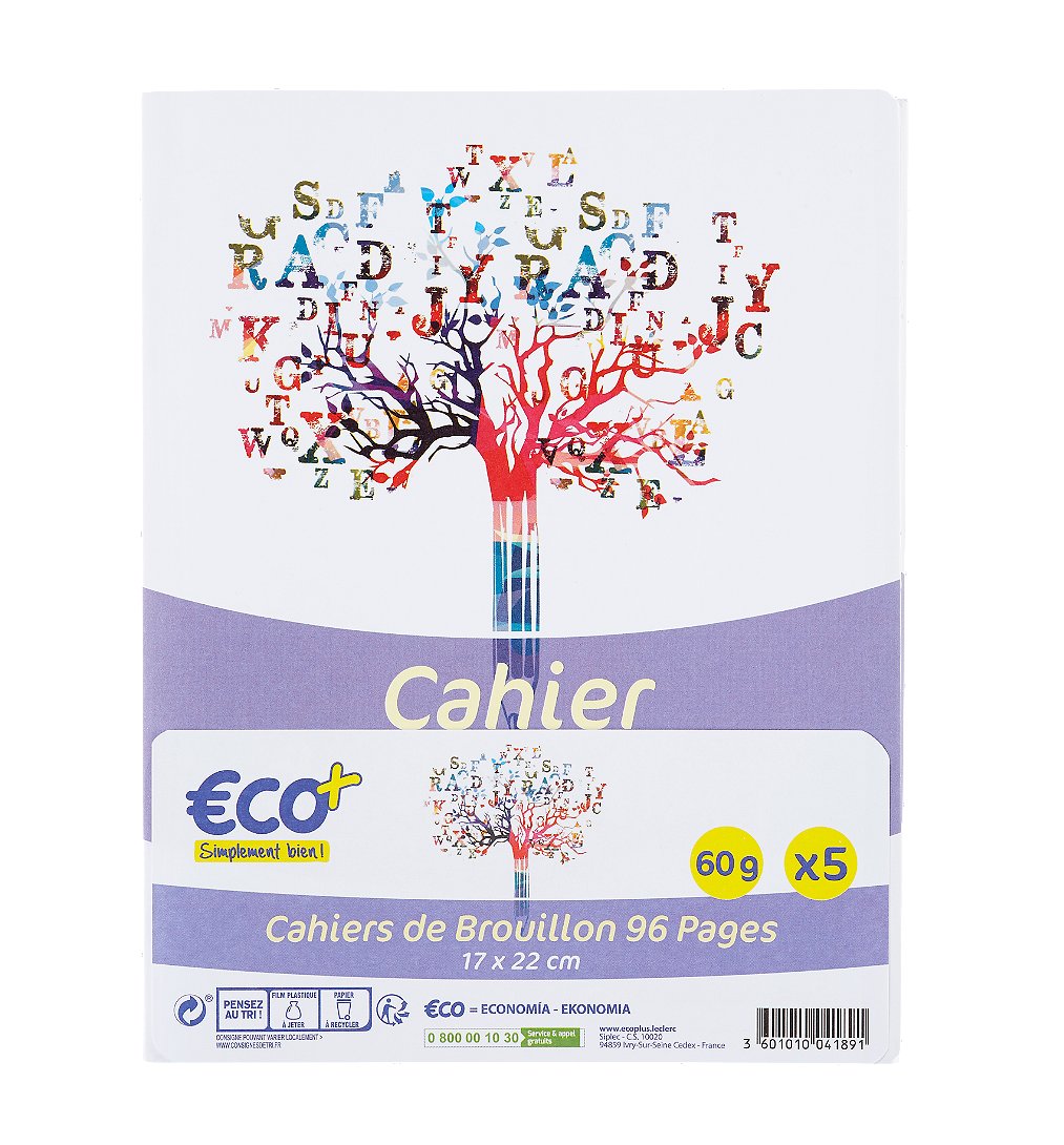 Libellé Lot de 5 cahiers de brouillon 96 pages 17x22cm grands carreaux - Eco+