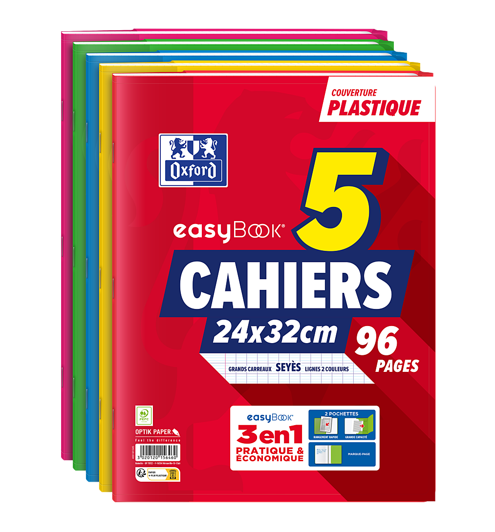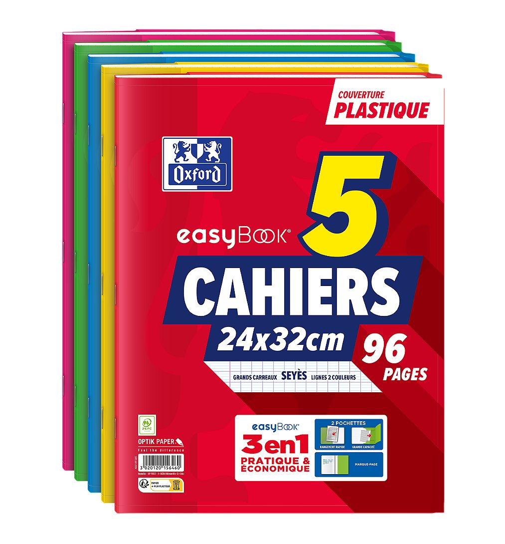 | Libellé | Lot De 5 Cahiers Easybook Agrafes 24X32 96P 90G Seyes |