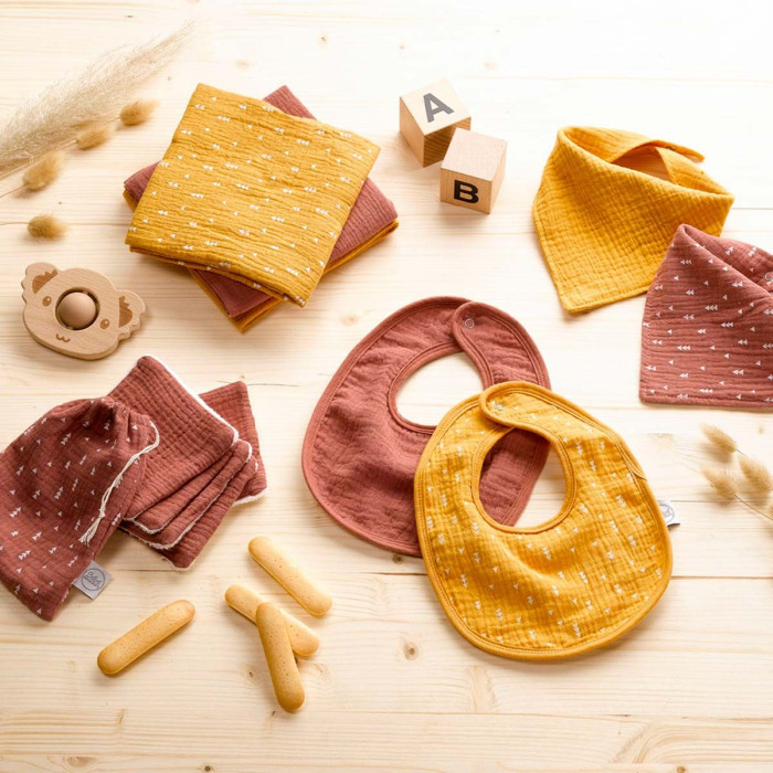 | Libellé | Lot de 5 Débarbouillettes Bébé "Pochon" 11cm Moutarde |