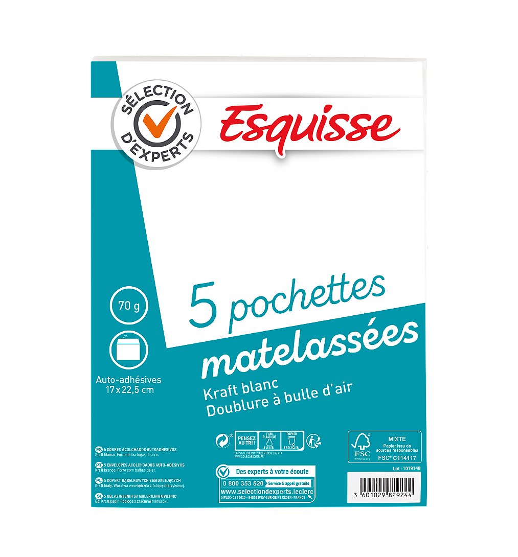 | Libellé | Lot de 5 pochettes à bulles matelassées 17x22cm - Sélection d'Experts - Esquisse |