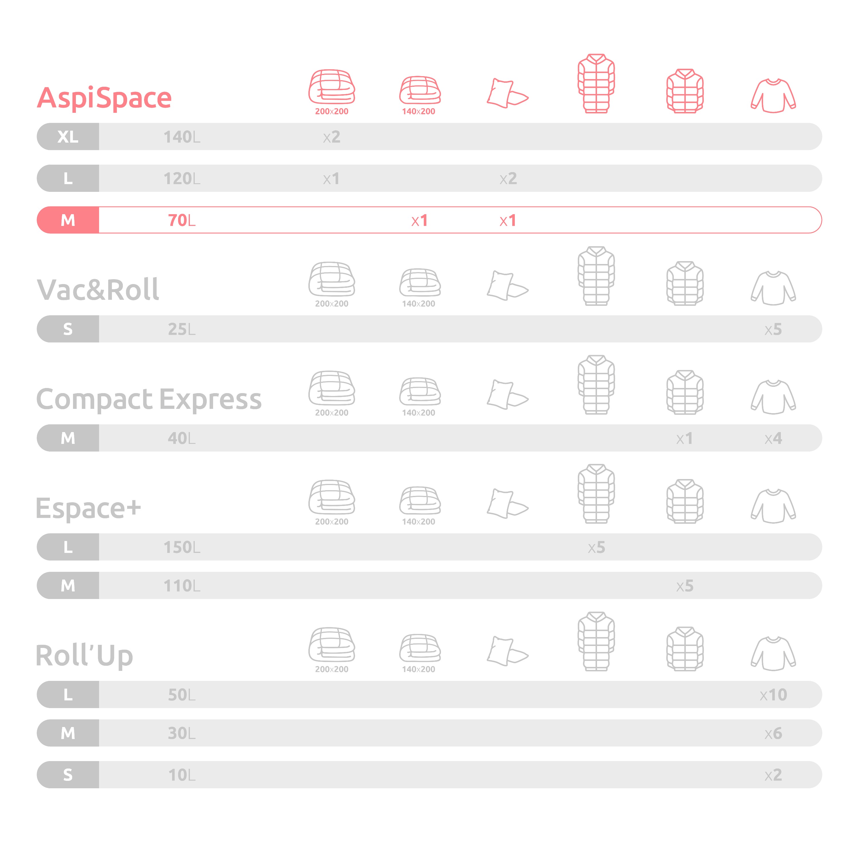 Lot de 5 sacs de compression classiques à fermeture éclair, taille M/Couleur : Transparent/Matière : Nylon & Polyéthylène/Dim : 55/x90