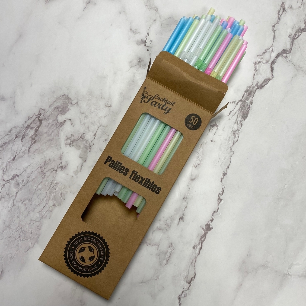 Lot de 50 Pailles Jetables Multicolores En Amidon De Maïs Compostables et Biodégradables