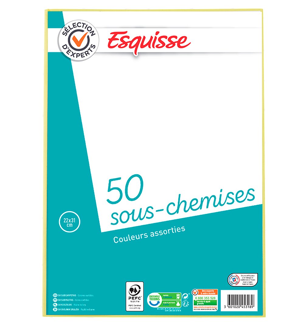 | Libellé | Lot de 50 sous chemises couleurs 60g carte - Sélection d'Experts - Esquisse |